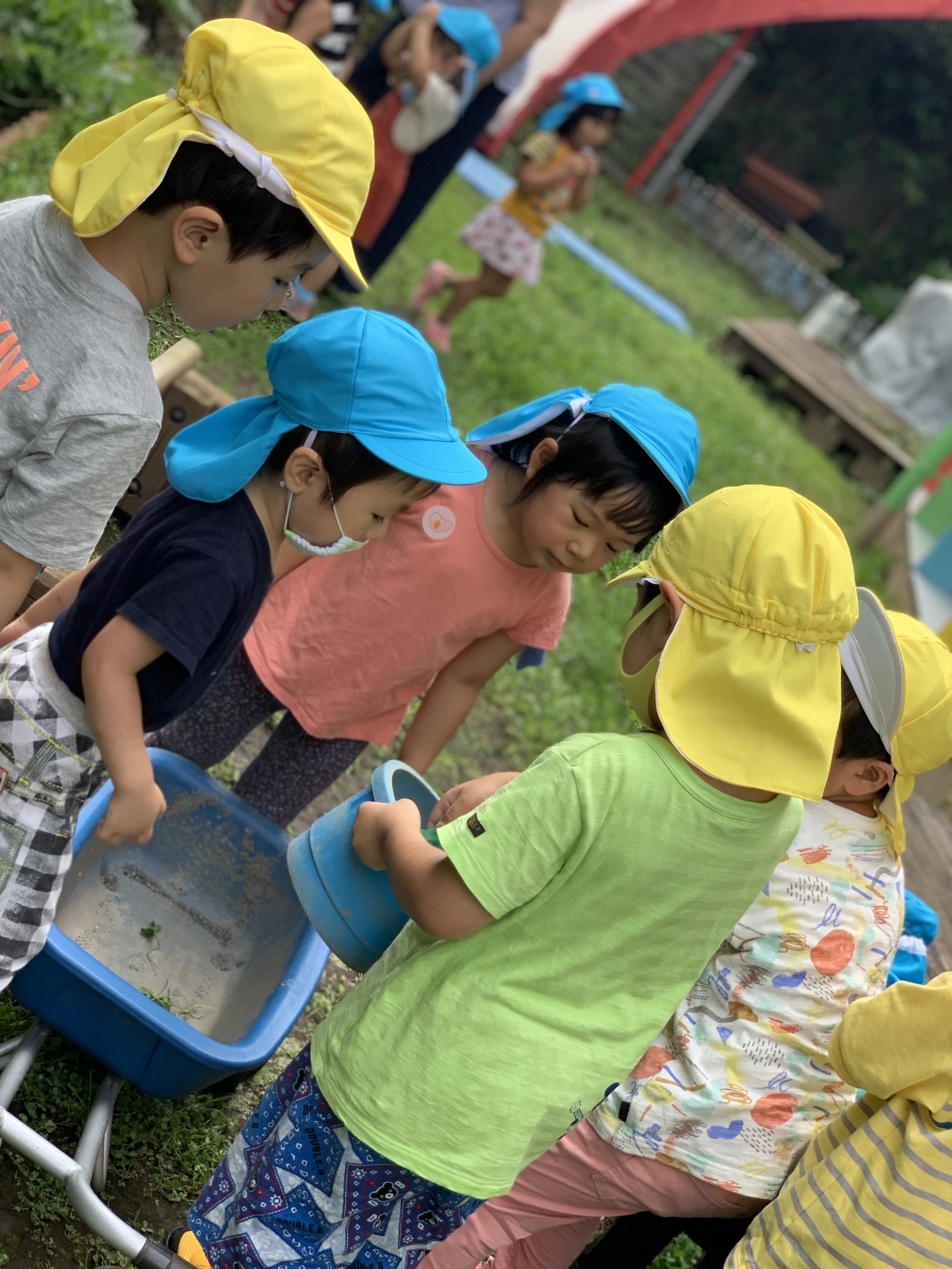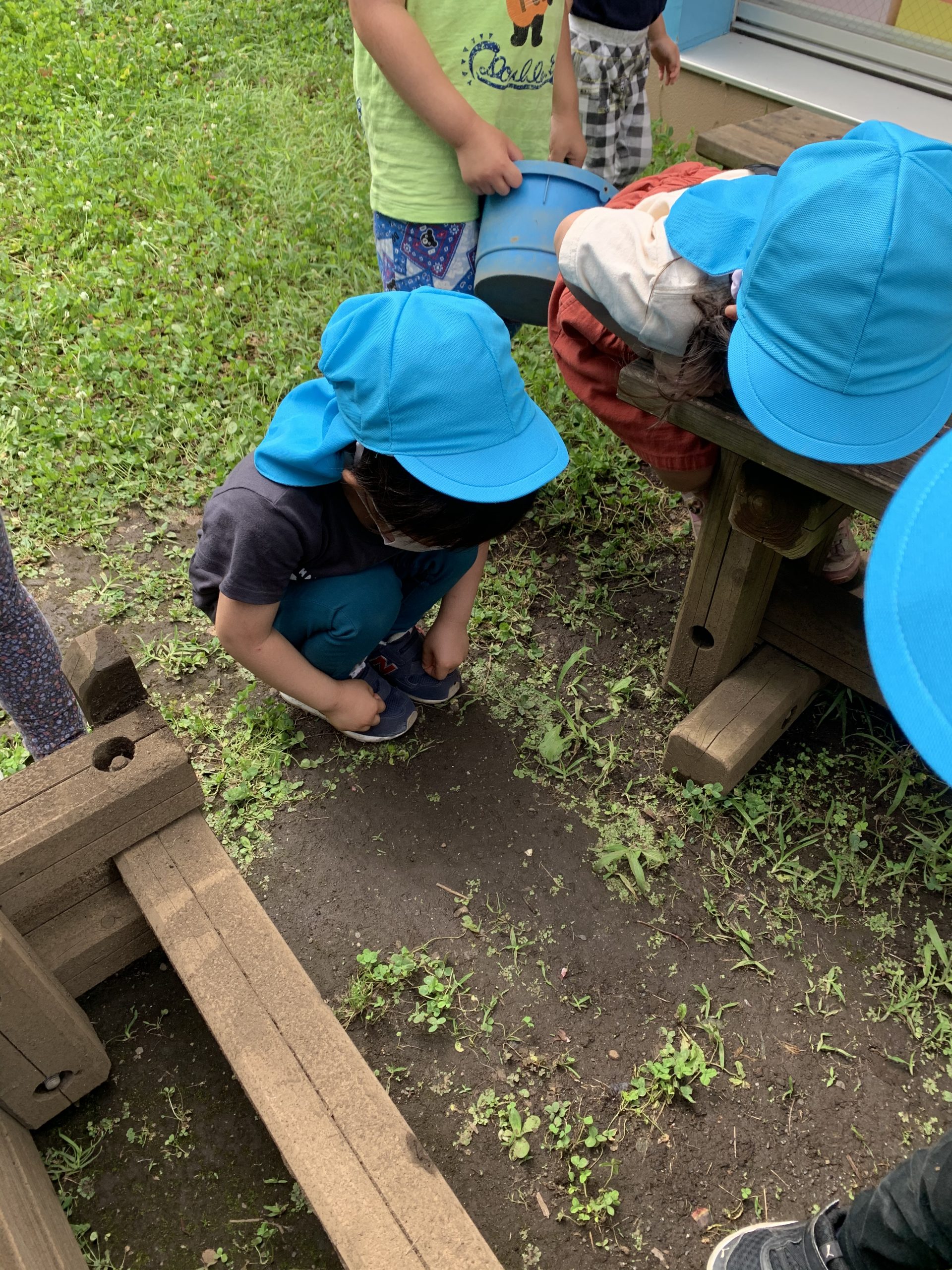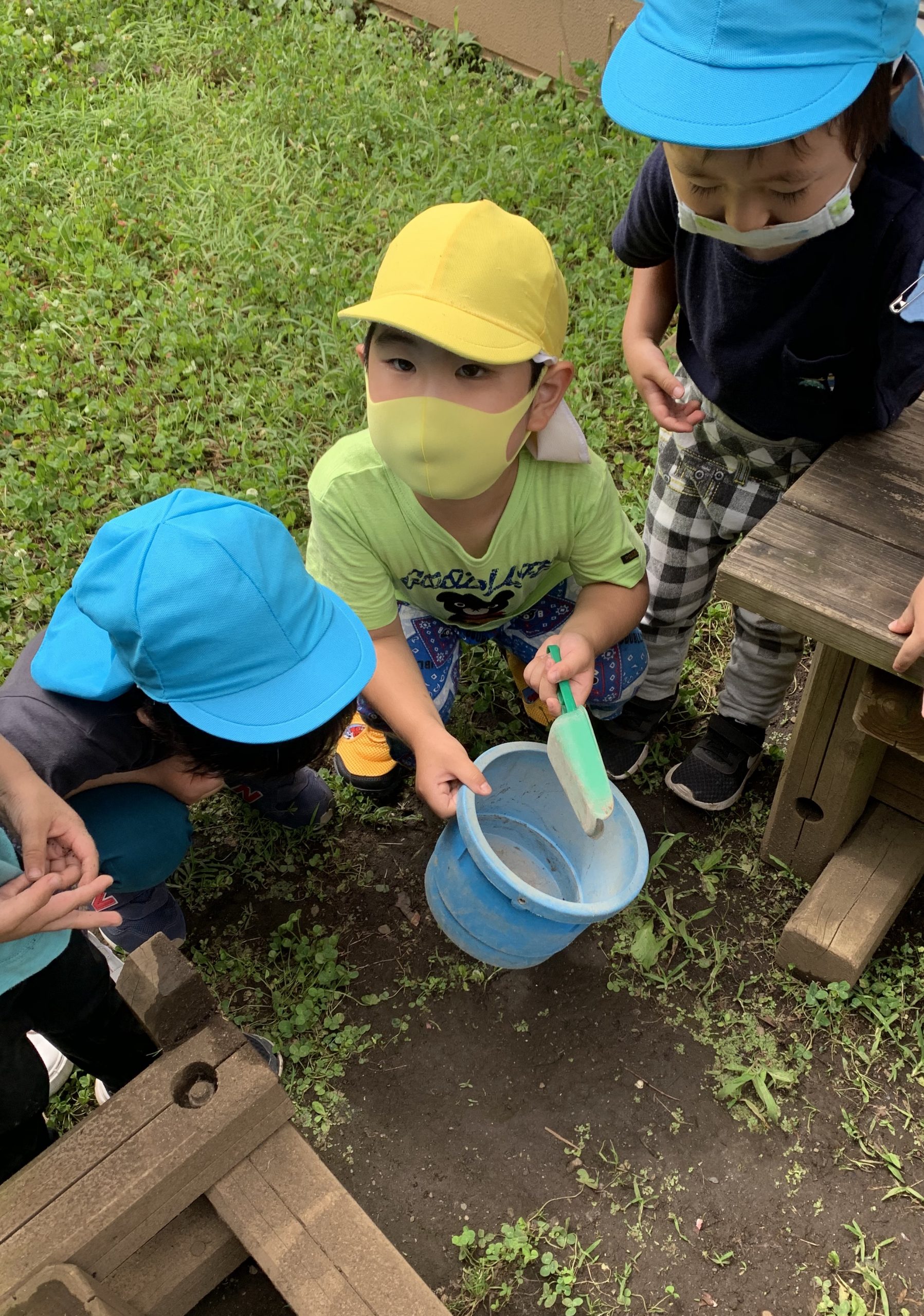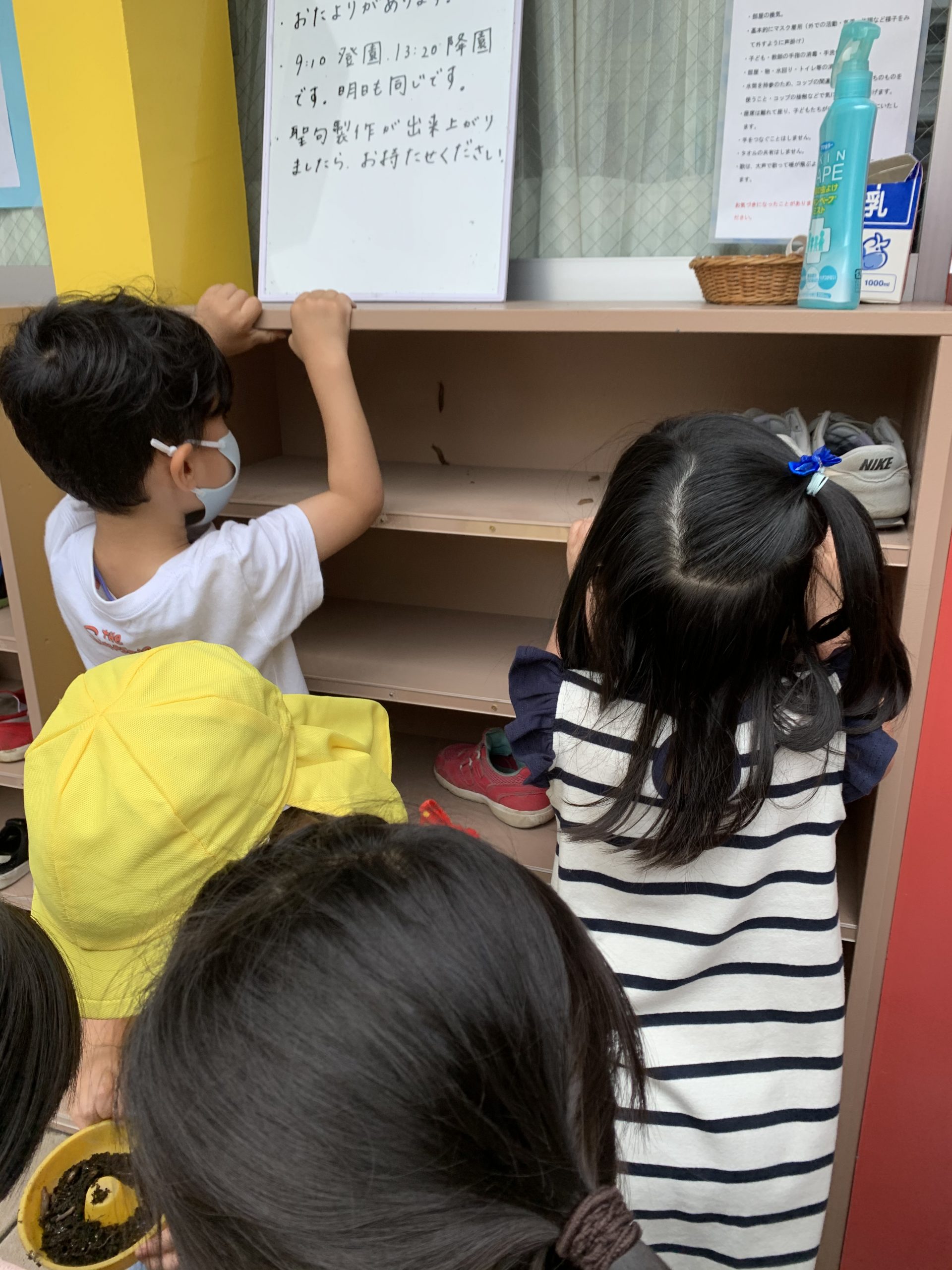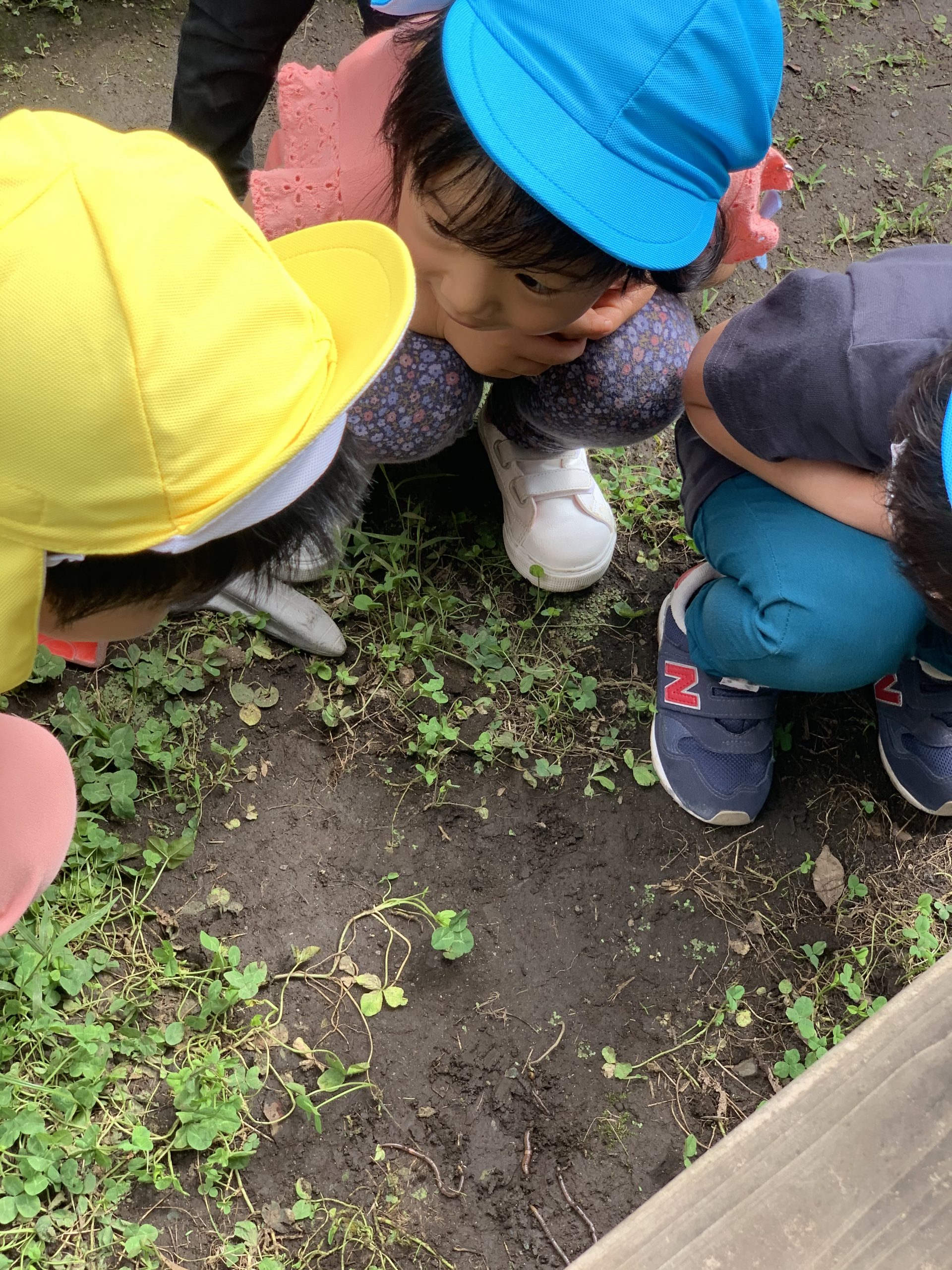 みみずやダンゴムシを次々捕まえて、ケースに入れていったり、蝶々を追って…捕まえる年中さんを目の当たりにし、年少さんは憧れないわけがありません。