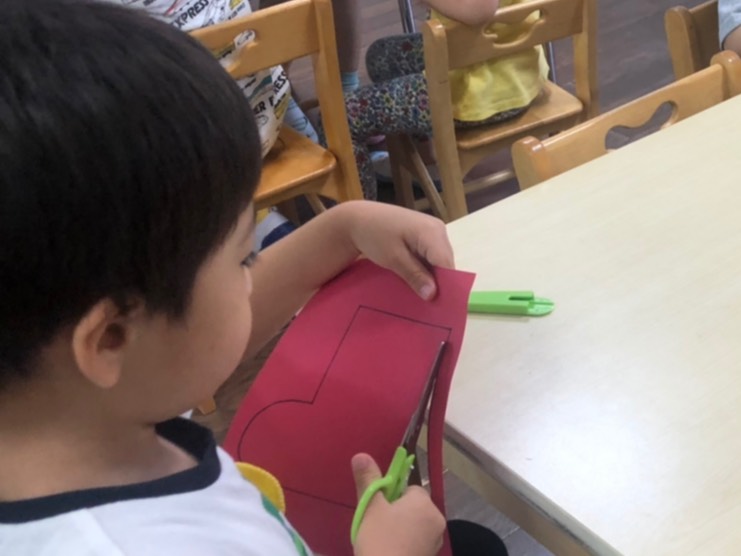 合同礼拝のあとは、グループ交流。それぞれのグループのお部屋で、聖句ボードの製作を楽しみました。