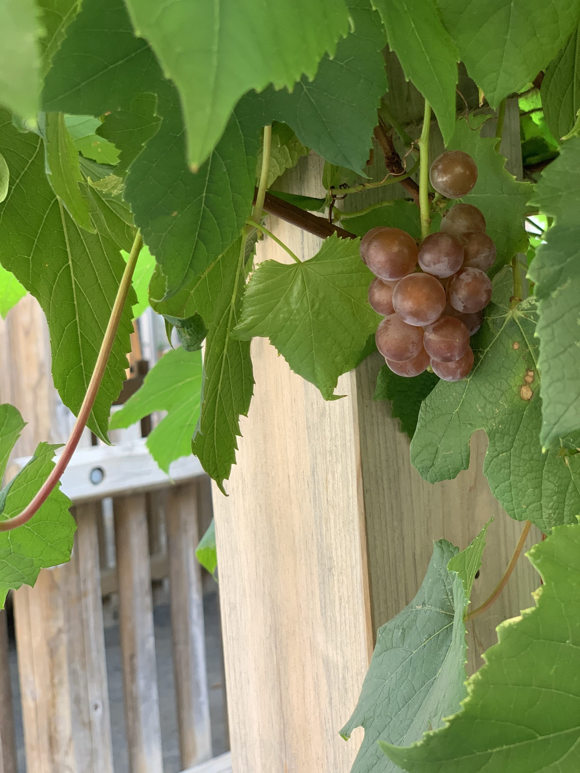 冬…枯れ木になった姿を見て『本当に枯れてしまったのではないか?』と思っていた『ぶどう』の木も春を過ぎ…青々と葉を付け…美味しそうなぶどうが3房…実をつけました。