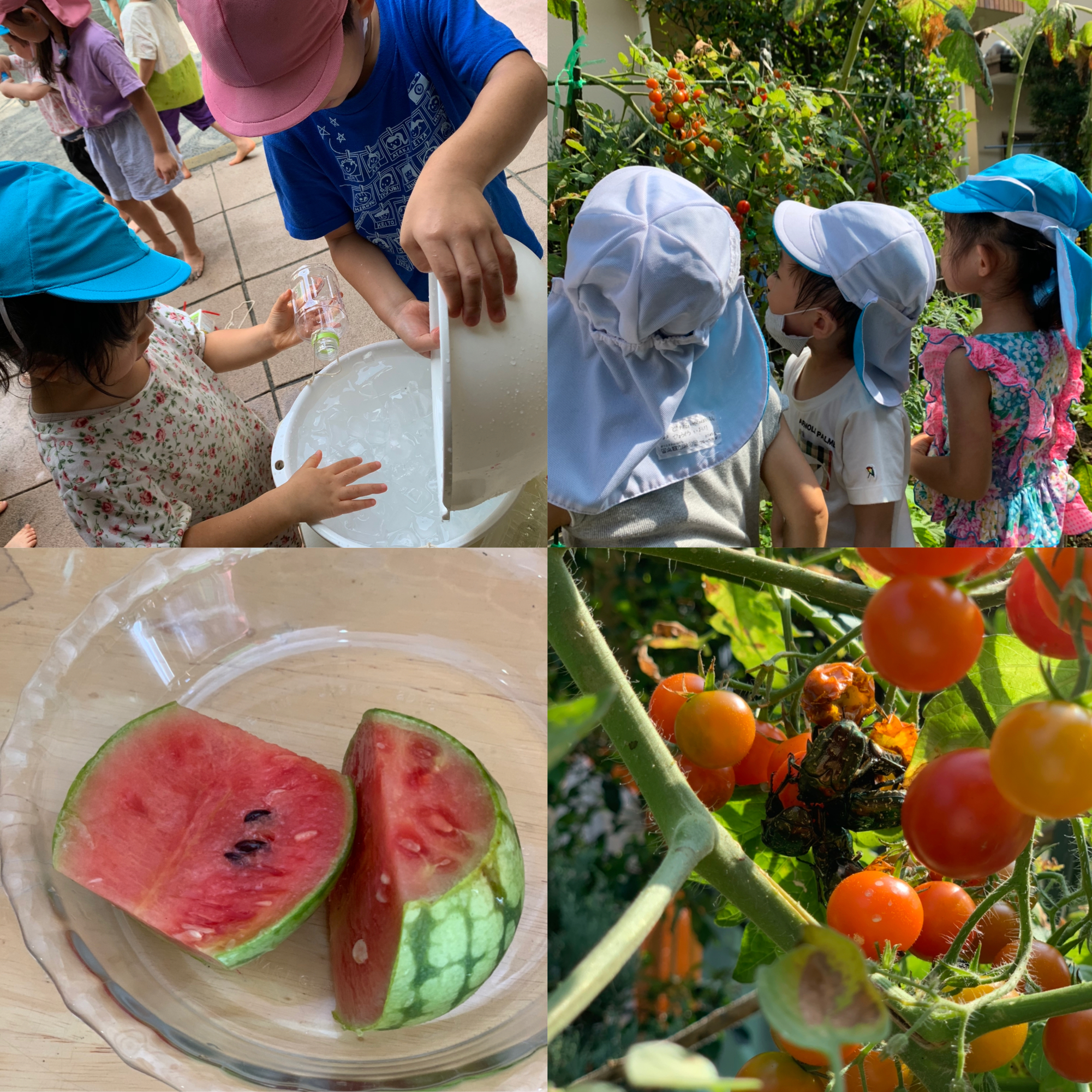 (幼稚園の庭で出来たスイカ)