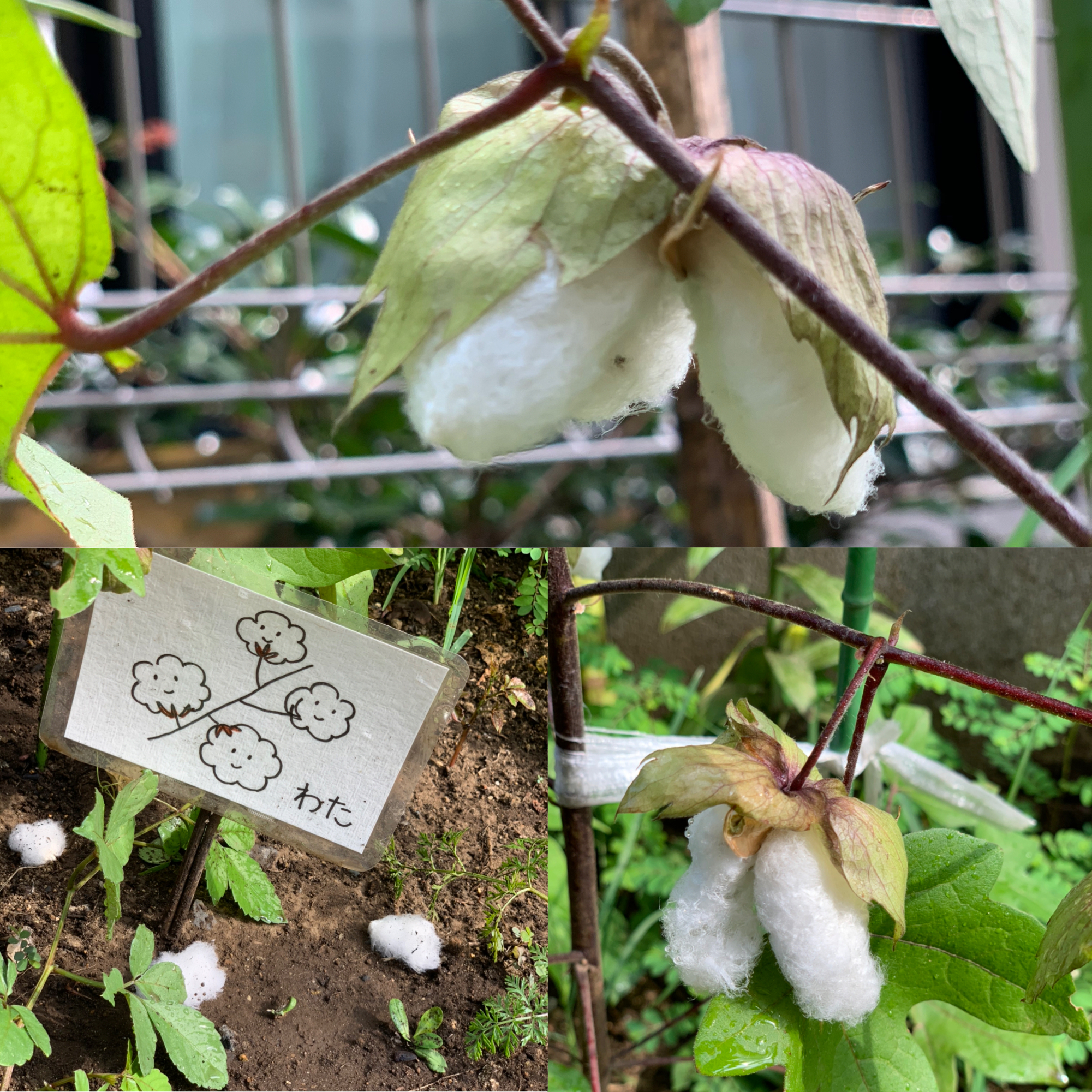幼稚園の裏庭で、綿が出来ました。いつもより早い出来のようです。
