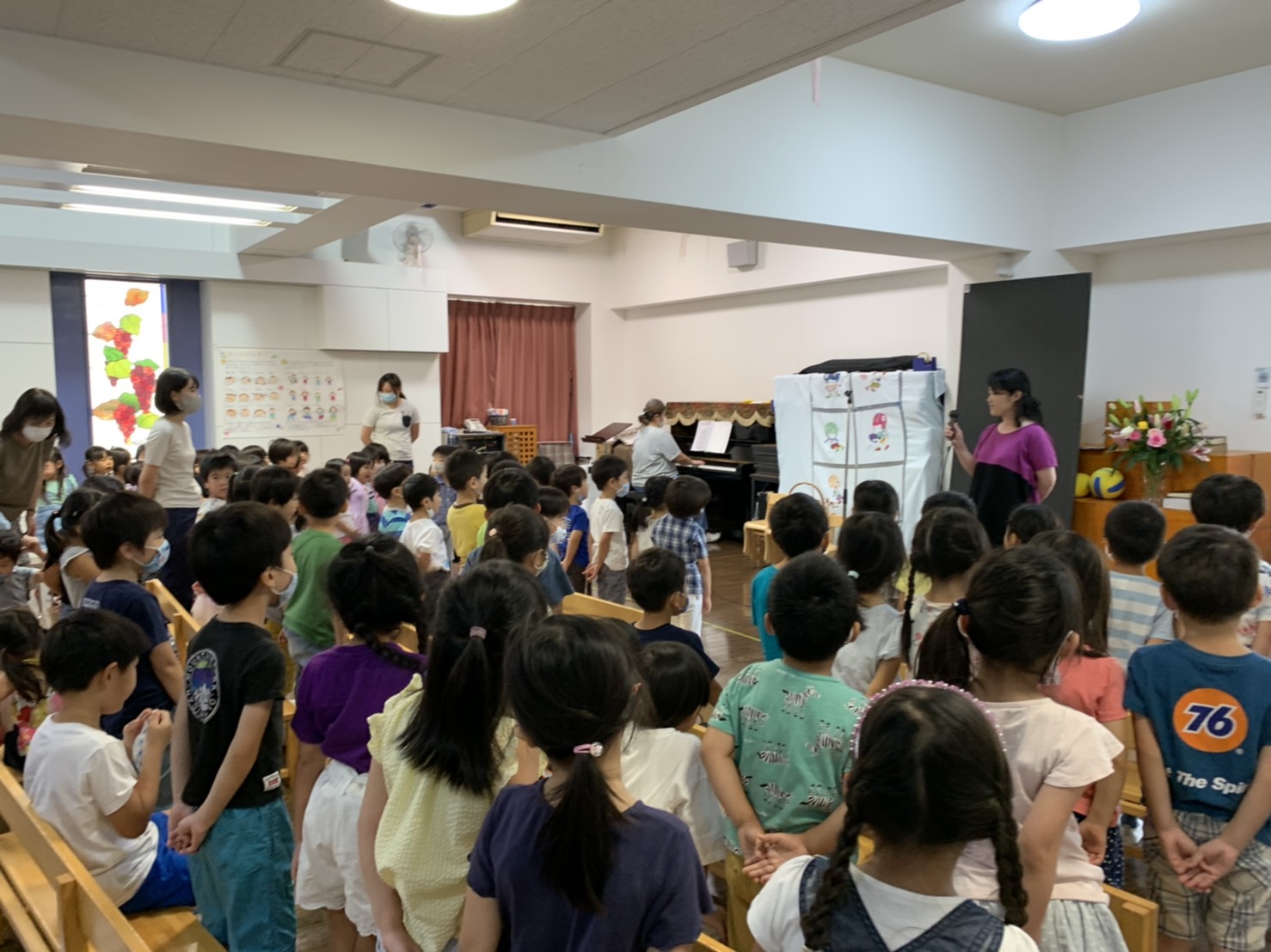 8月生まれお誕生日会 今日のひとこま 2020.09.10 今日は8月生まれのお誕生日会でした。夏休み中にお誕生日を迎えたお友だち。おうちの方と一緒にお祝いをしました。年長組はお母様方によるマジックショー!子どもたちもびっくり。とても楽しいひとときでした。感謝です。お誕生日おめでとうございます!