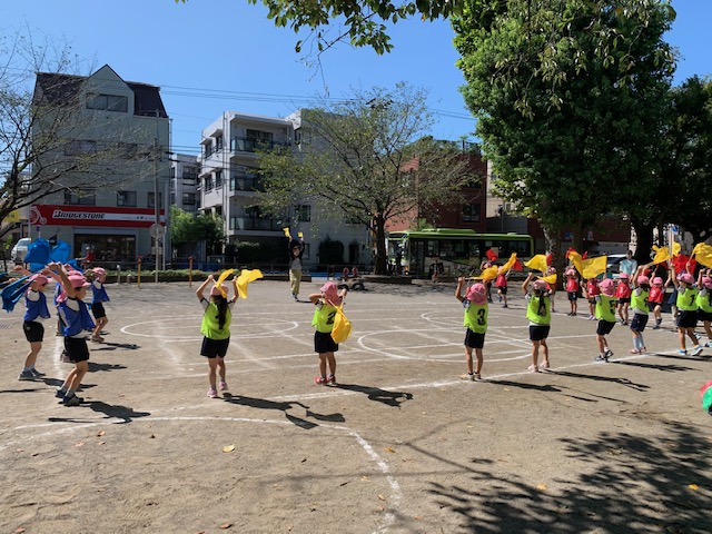 運動会練習 今日のひとこま 2020.09.28 今日は良い天気だったので、近くの公園に行って運動会の練習を行いました。初めて3学年全員で行き、ダンスやかけっこ、リレーなどで頑張る素敵な姿を他の学年のお友だちに見せようと練習をしました。これからもたくさん練習して、みんなの素敵な姿をおうちの方に、見ていただけるよう頑張りましょうね!