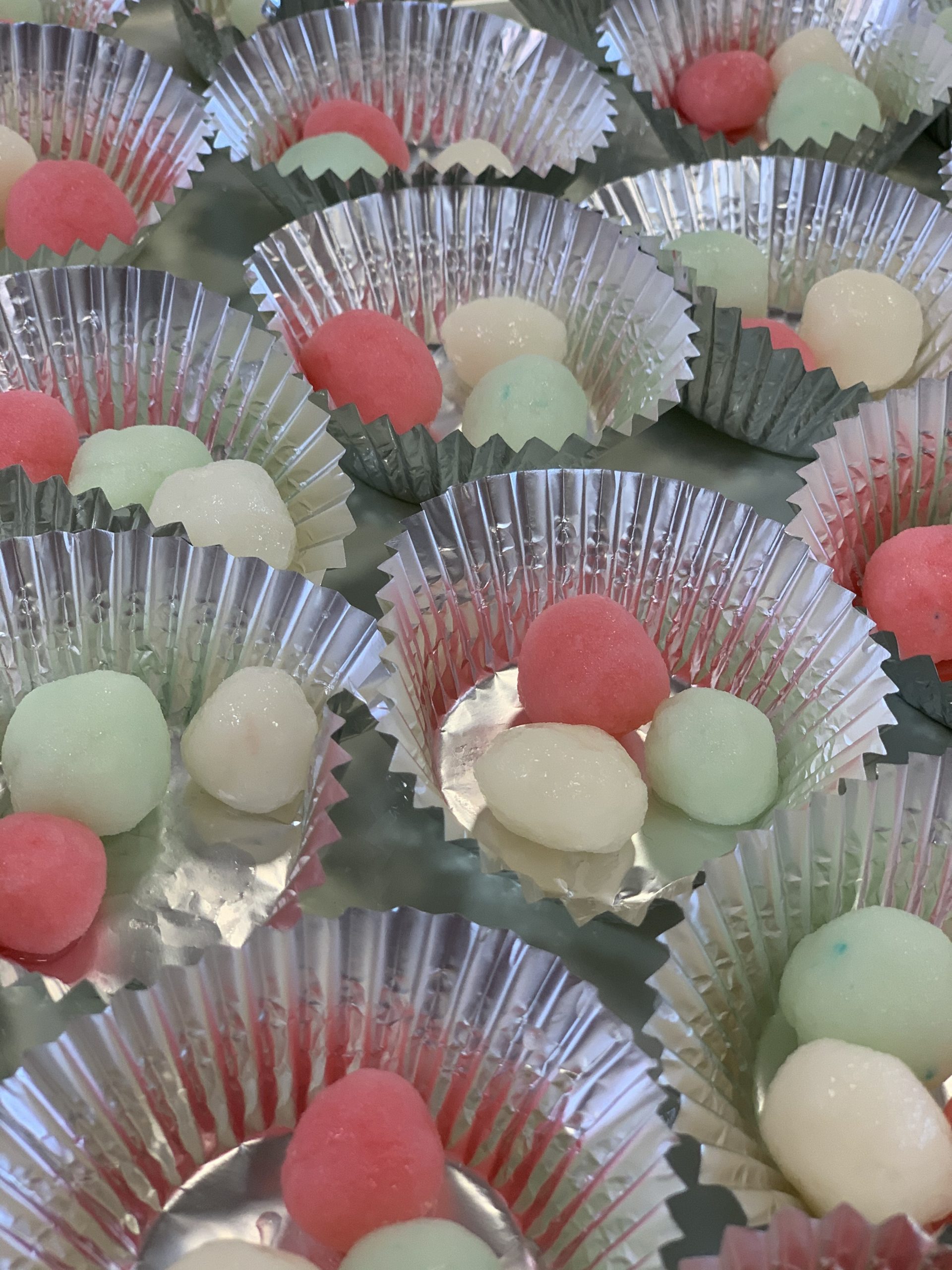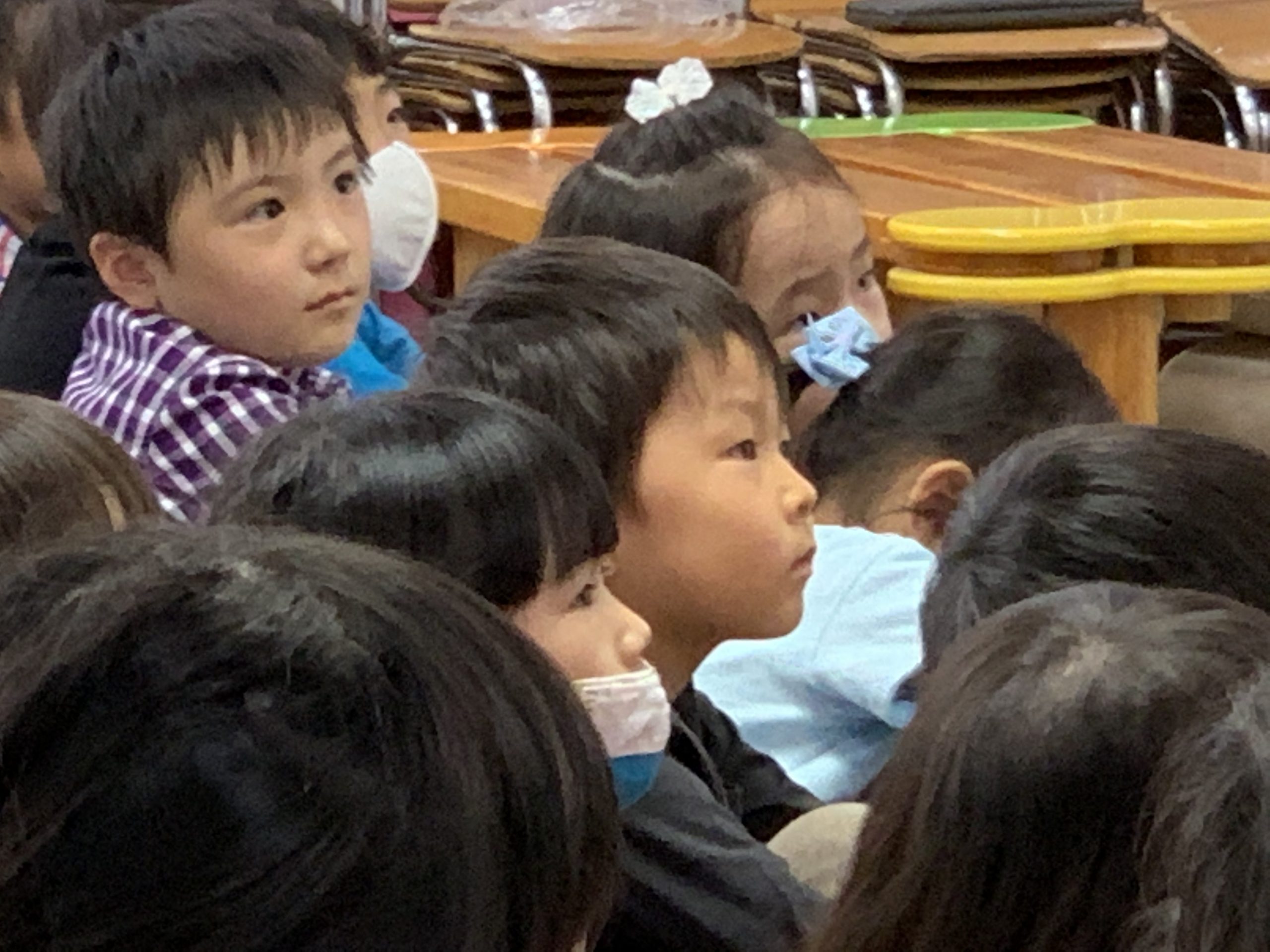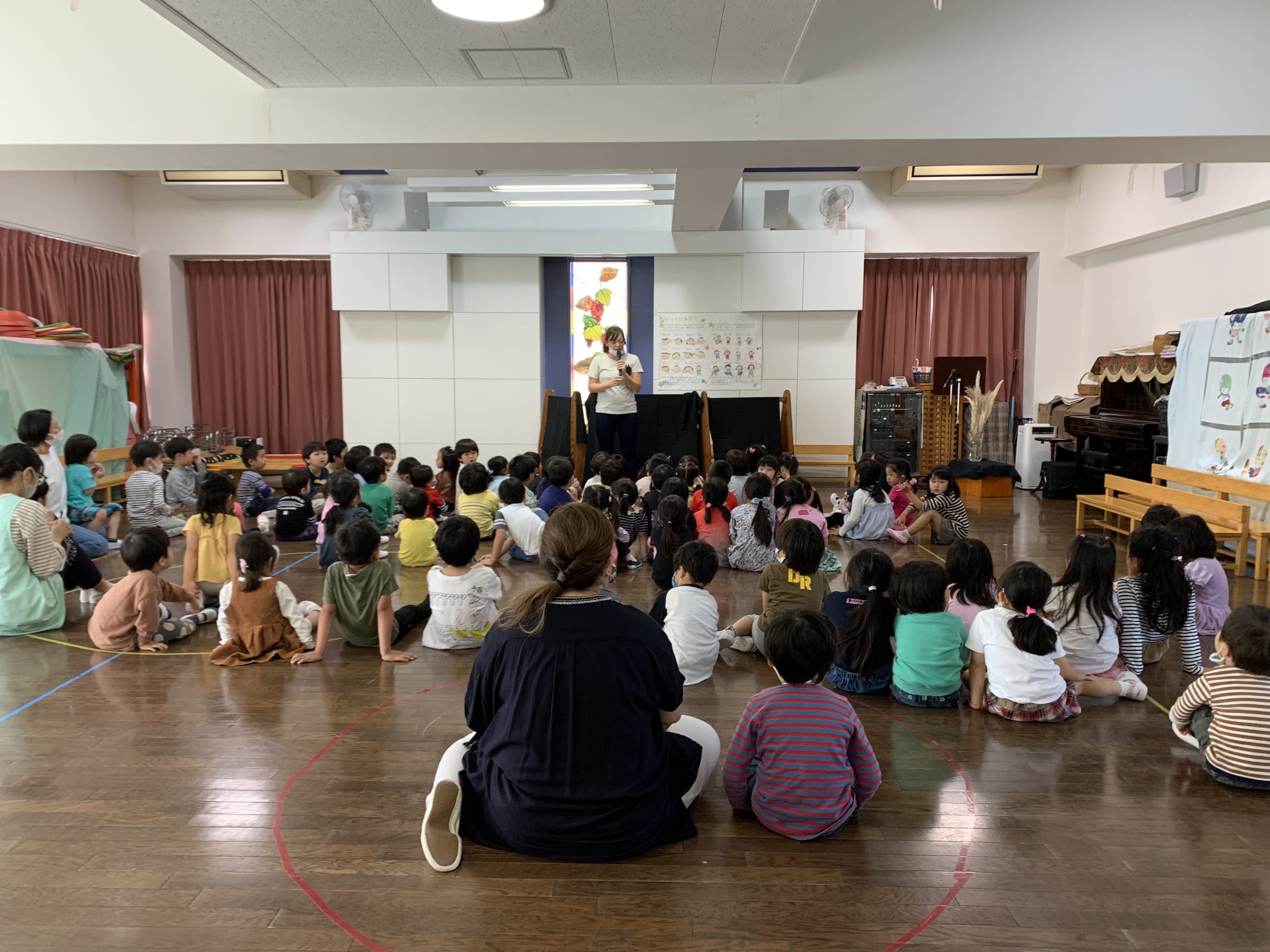 『十五夜』のお話を聞いたり、歌を歌ったり…お月さまのペープサートを見て…お月さまのことに少し詳しくなりましたね!最後には、上新粉での3色お団子をいただきました。
