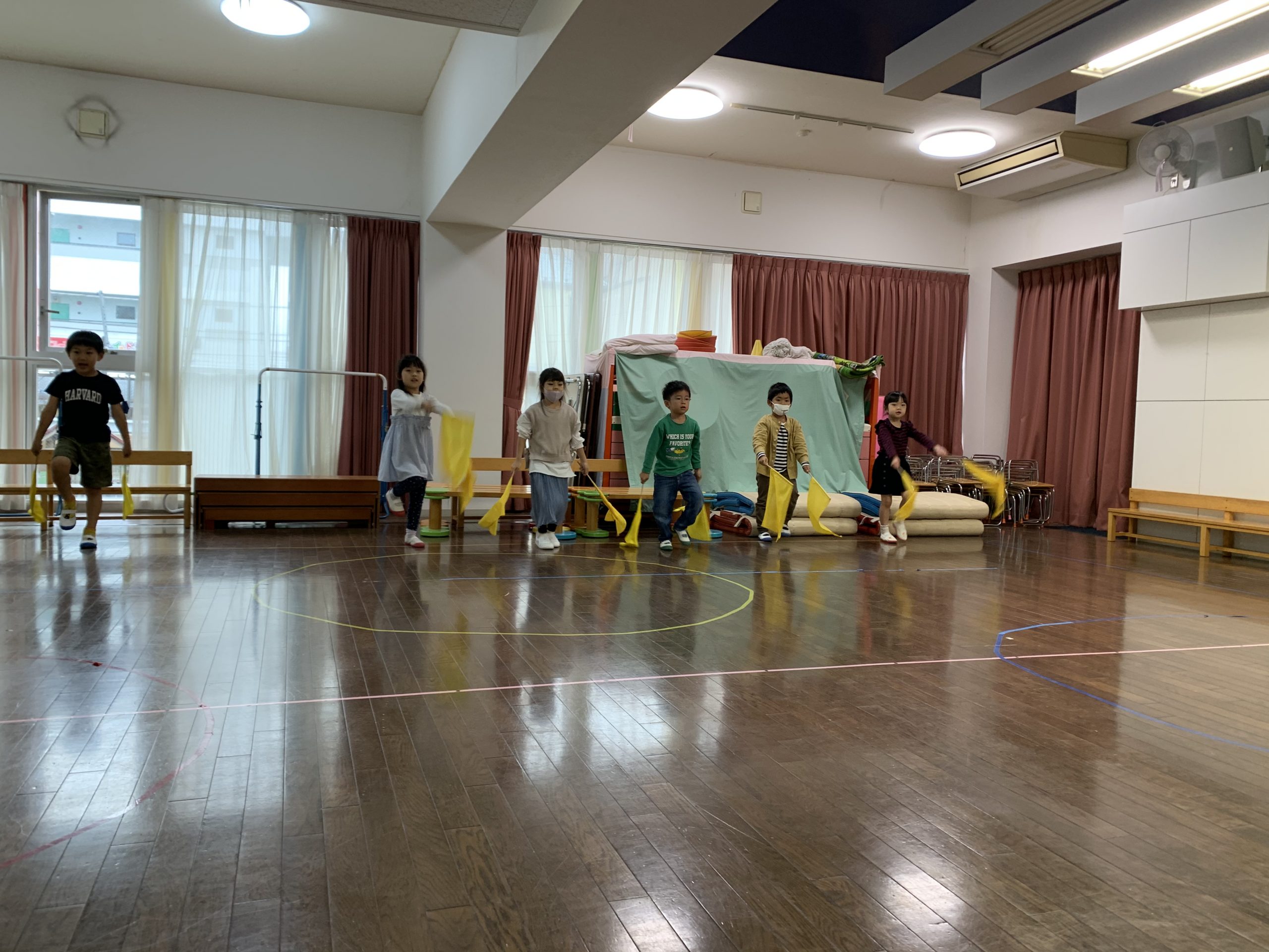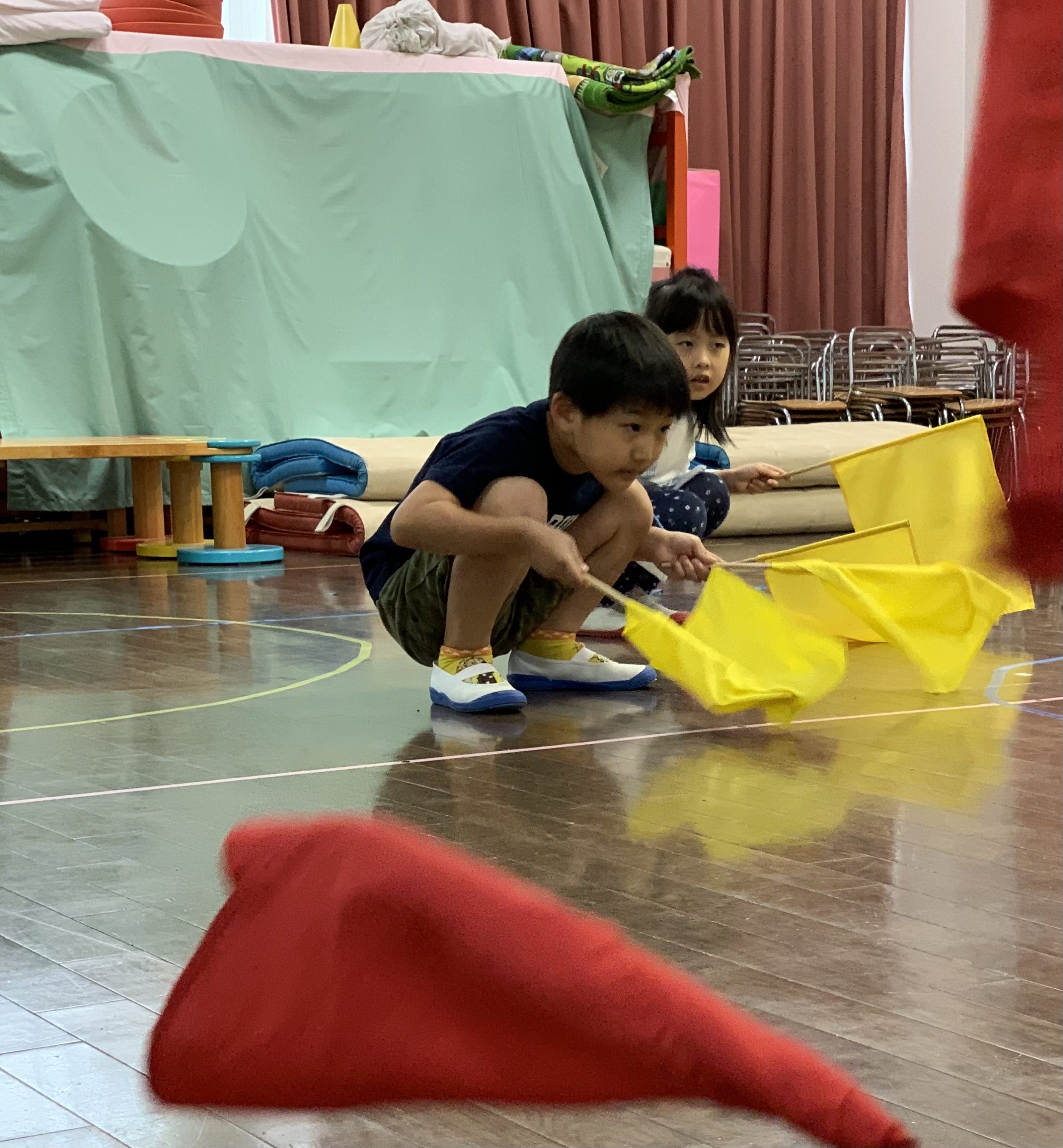 子どもたちは、思いがけず幼稚園でゆったりと過ごせた一日となり、ダンスの確認をゆっくりしたり、玉入れ・みんなでチャレンジもゆっくりやってみることが出来ました。