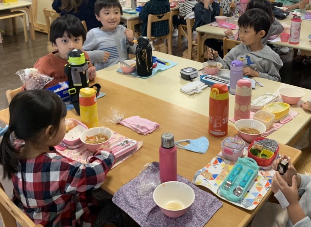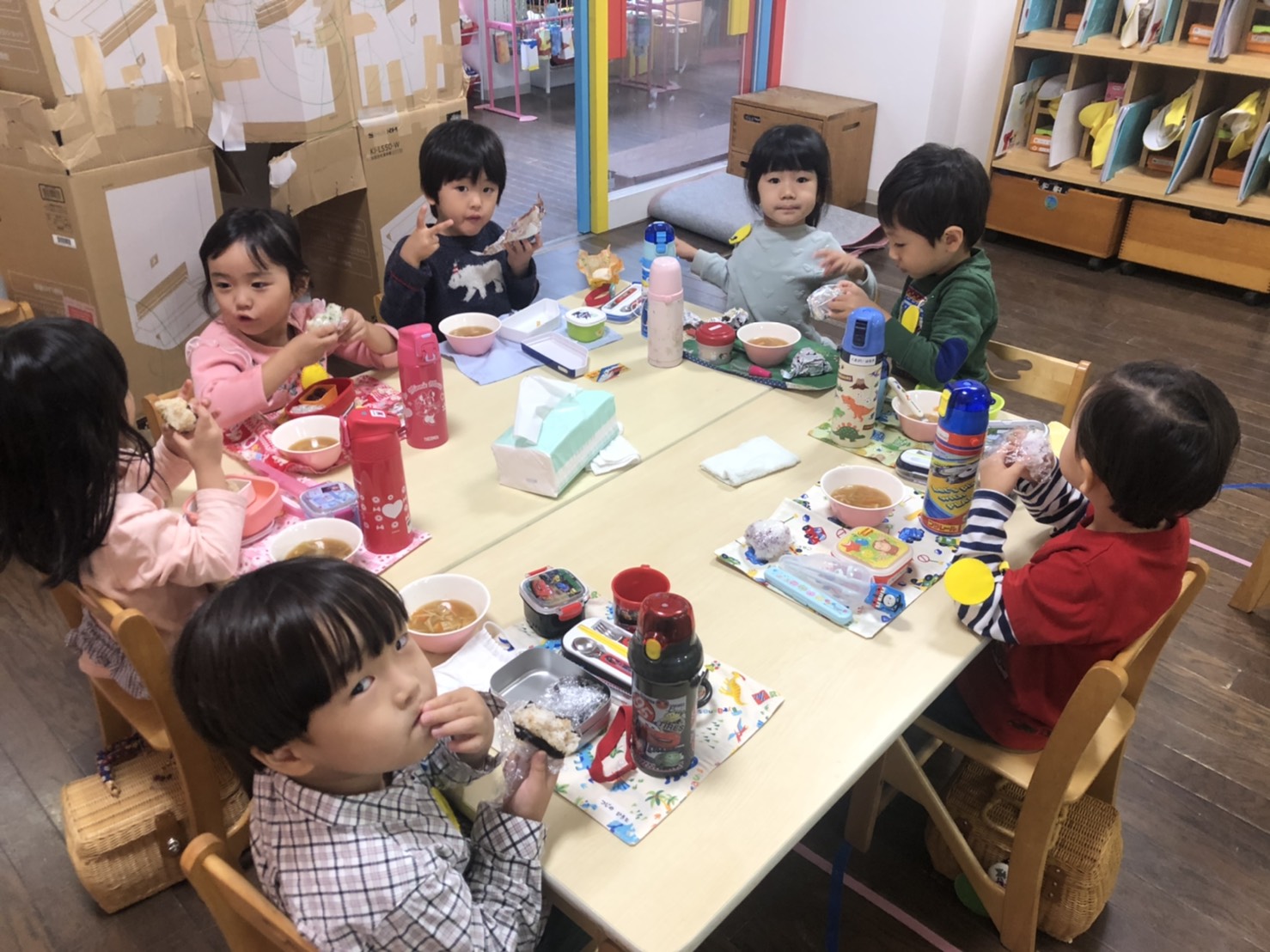 運動会ごっこの後はグループでお弁当の時間を過ごしました。
