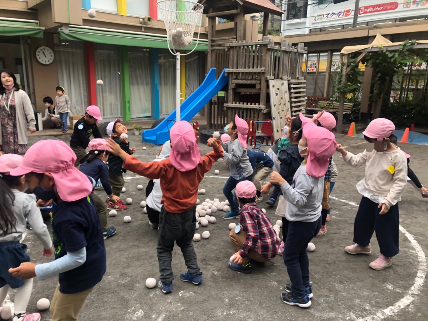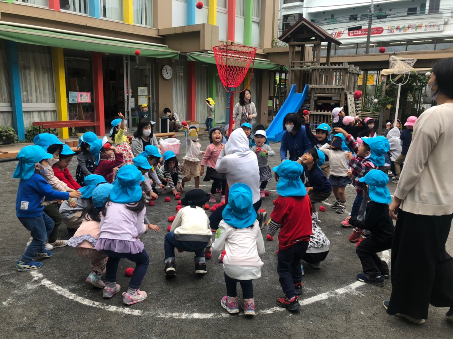 さくら組VSゆり組では、かごの高さを変えました。ゆり組さんは初めてでしたが、ジャンプをしながら投げて、頑張っていました!