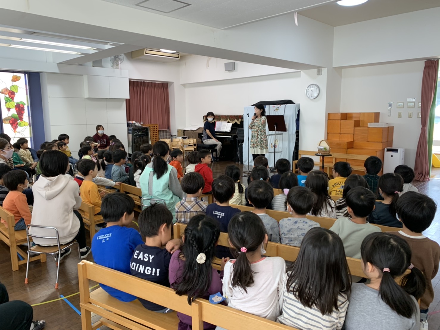 今日は10月生まれのお誕生日会でした。おうちの方とお友だちと、みんなで一緒にお祝いをしました。
