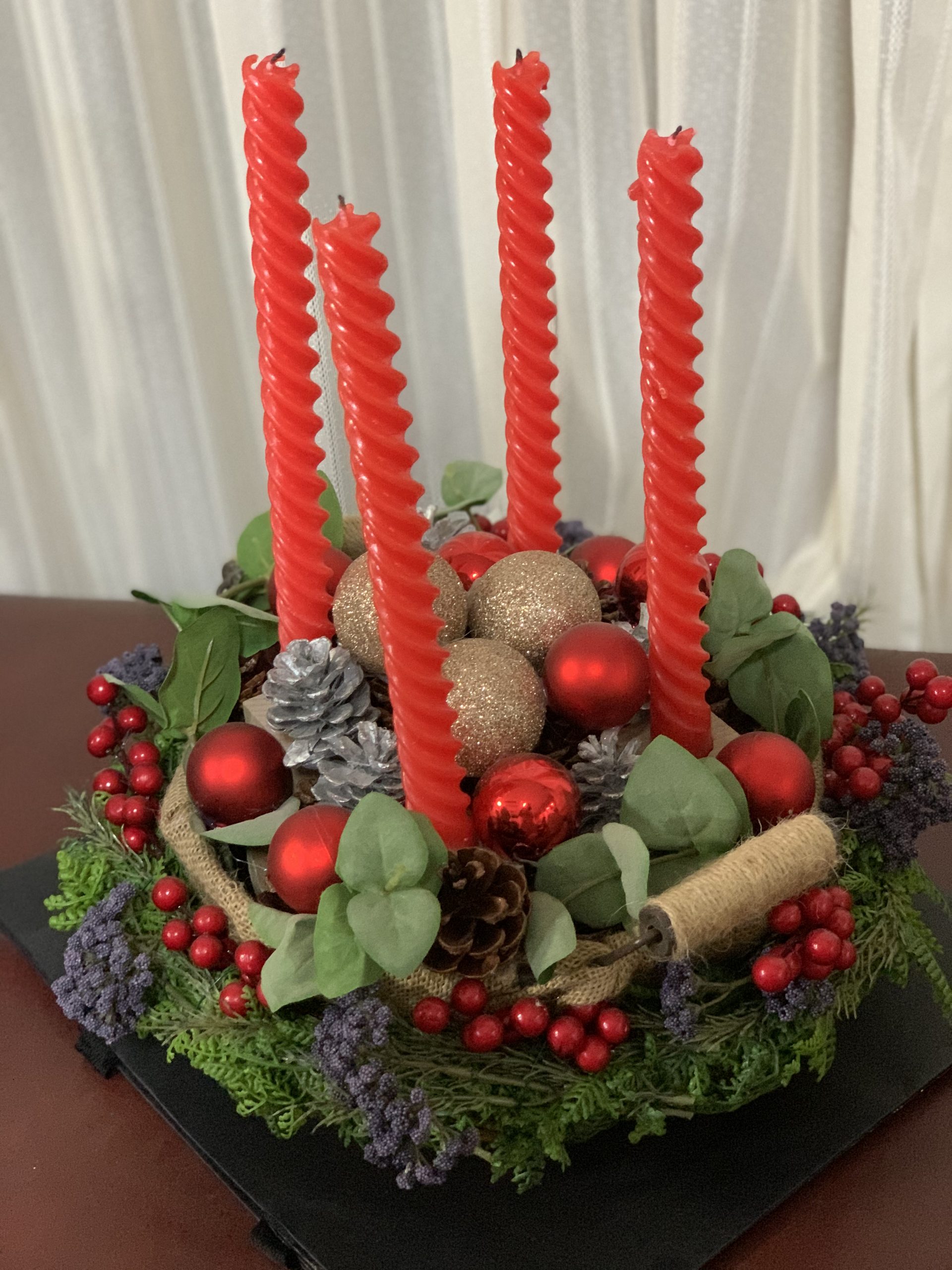 今年は、手作り会の方に依頼して、アドベントクランツを作っていただきました。