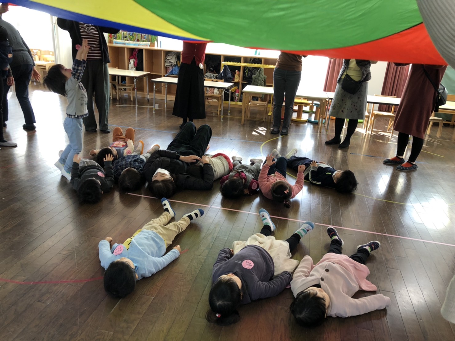 楽器を片付けたら、今度は大きなパラバルーンが出てきましたね。