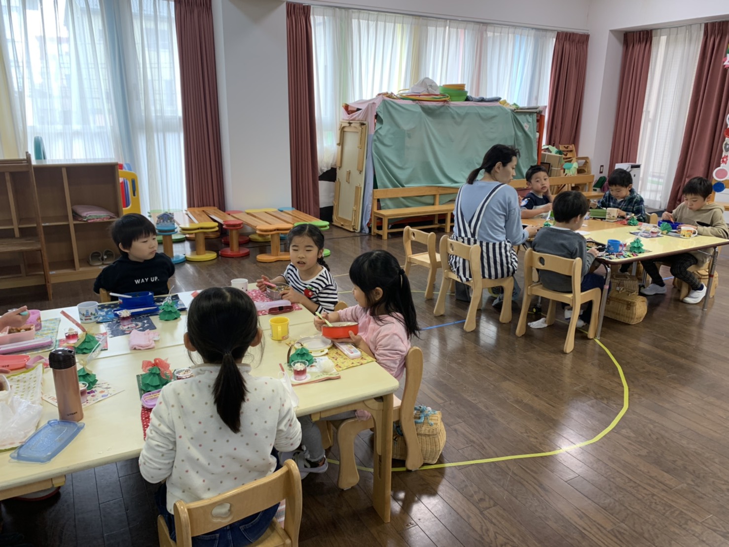 今日は年長組のおうちの方が美味しいカレーを作ってくださり、デザートもデコレーションしてくださいました。手作りクリスマスツリーのプレゼントもいただいて、喜んでいました。ありがとうございました!ステキなクリスマスの思い出がまた一つ出来ました。