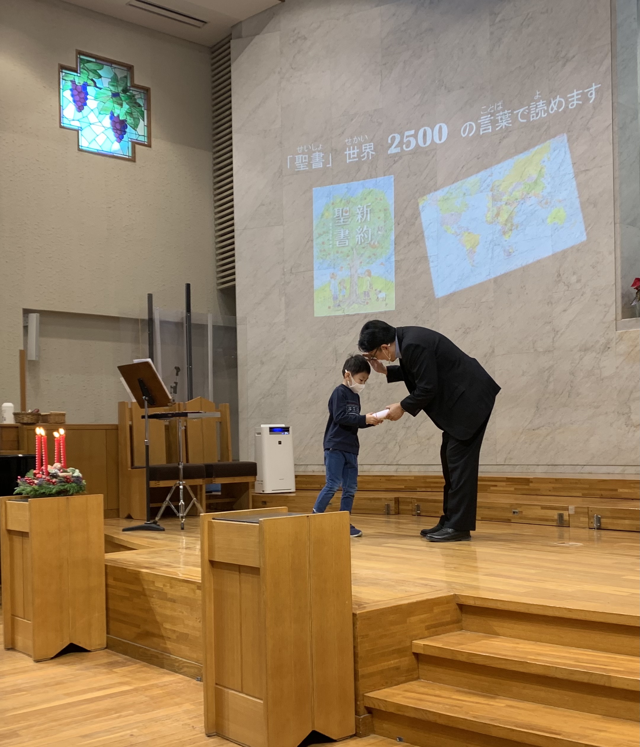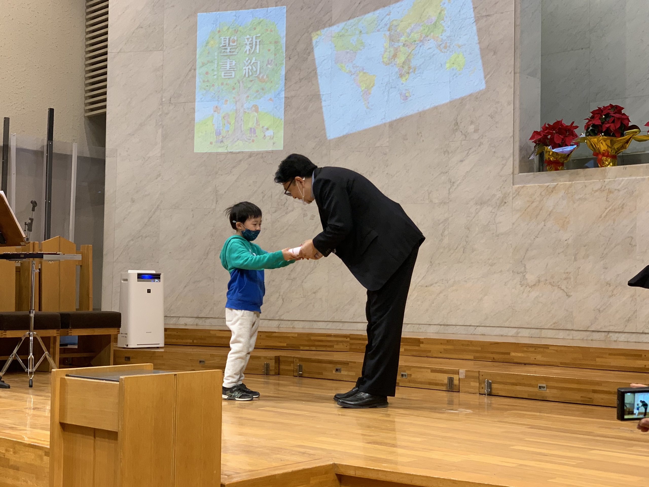 終園式の最後には、年長組への卒園記念の聖書のプレゼントがありました。
