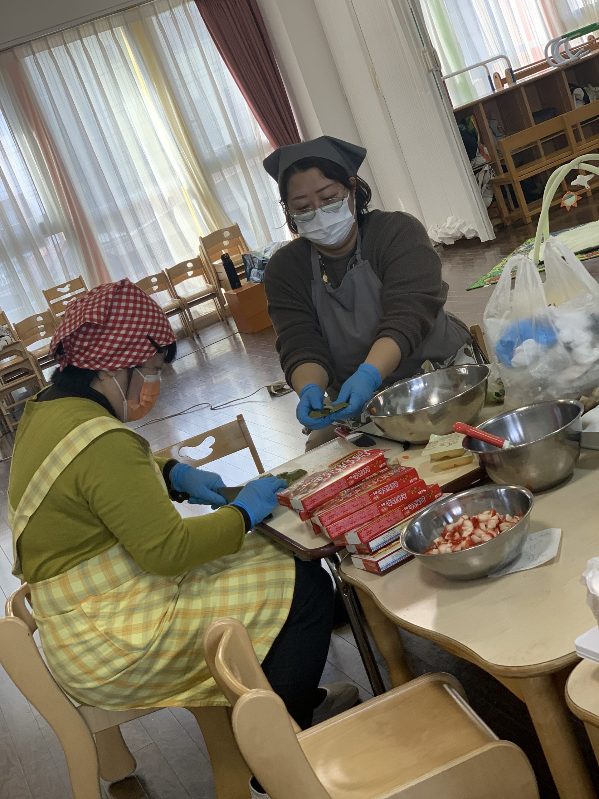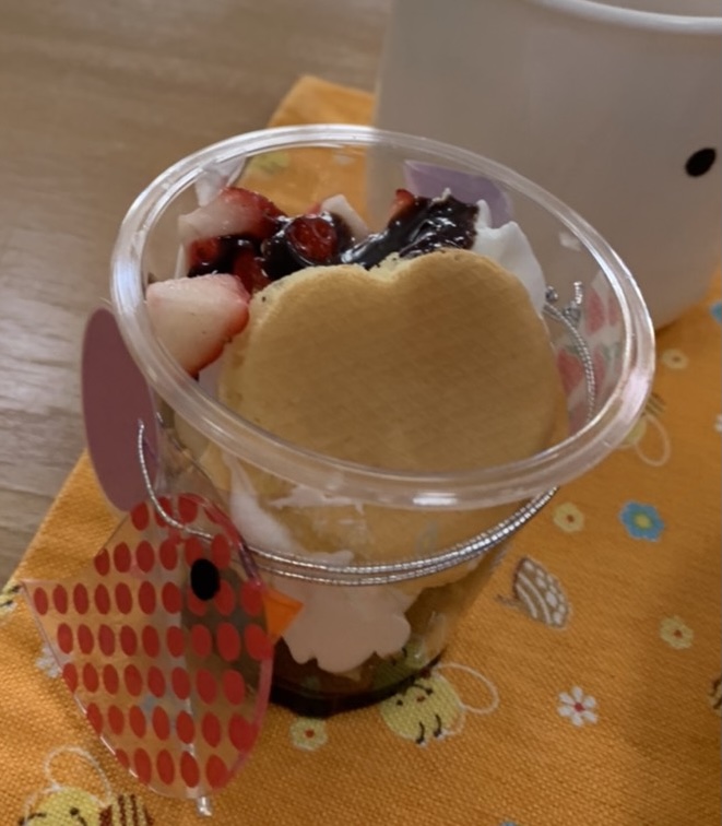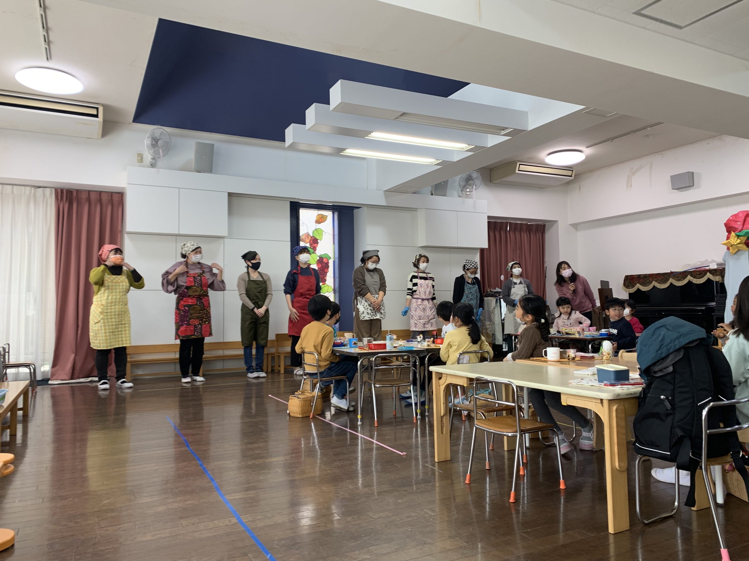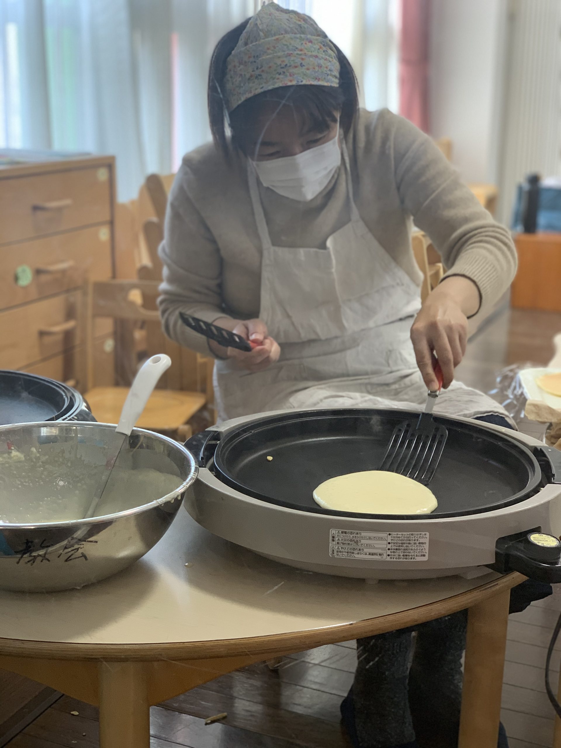 今日は今年度最後の親子会食でした。年長組のおうちの方が美味しいカレーを作って下さいました。デザートはかわいいデコレーションパンケーキ!プレゼントのキーホルダーも付いていました。うれしかったですね。おうちの方々、ありがとうございました!