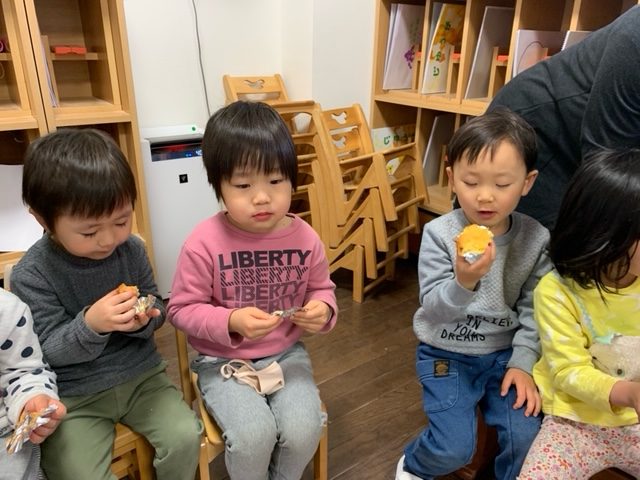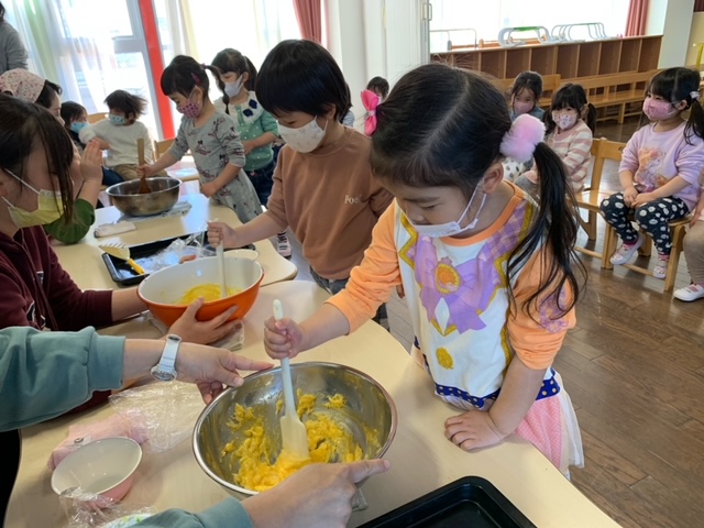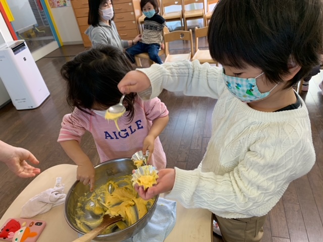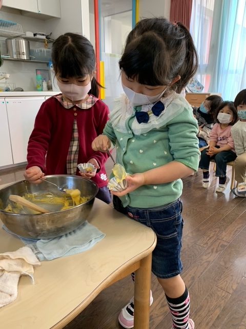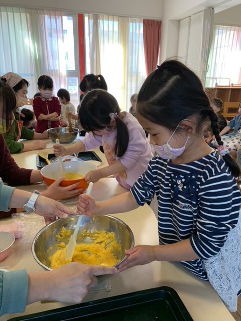 みんなでマドレーヌを作って食べました♪「美味しくておかわりがほしい!」と、大切に食べる子ども達でした。