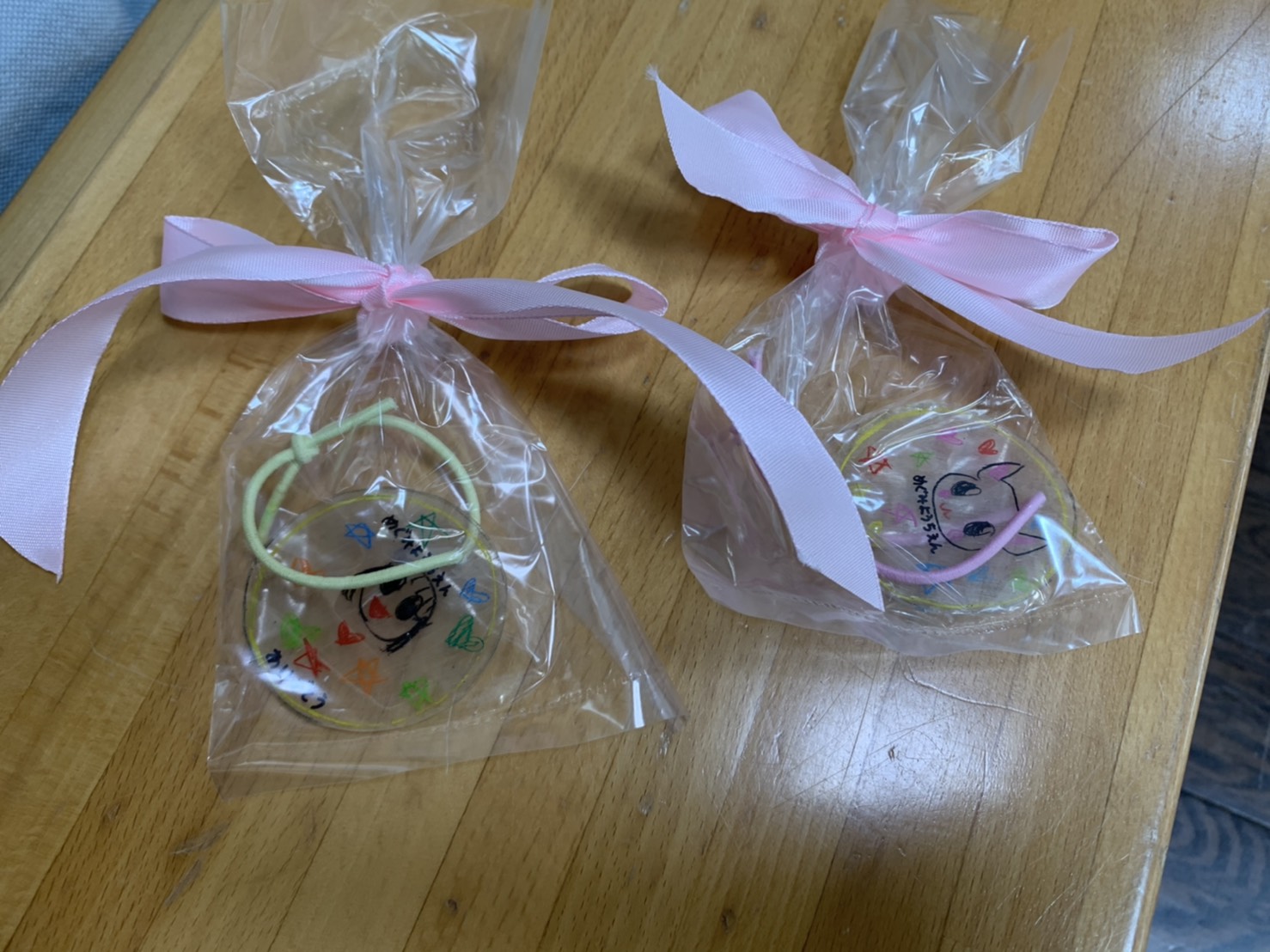 年長組はお返しのプレゼントとして、プラ板キーホルダーを渡しました。どこかにつけてくれるとうれしいです!