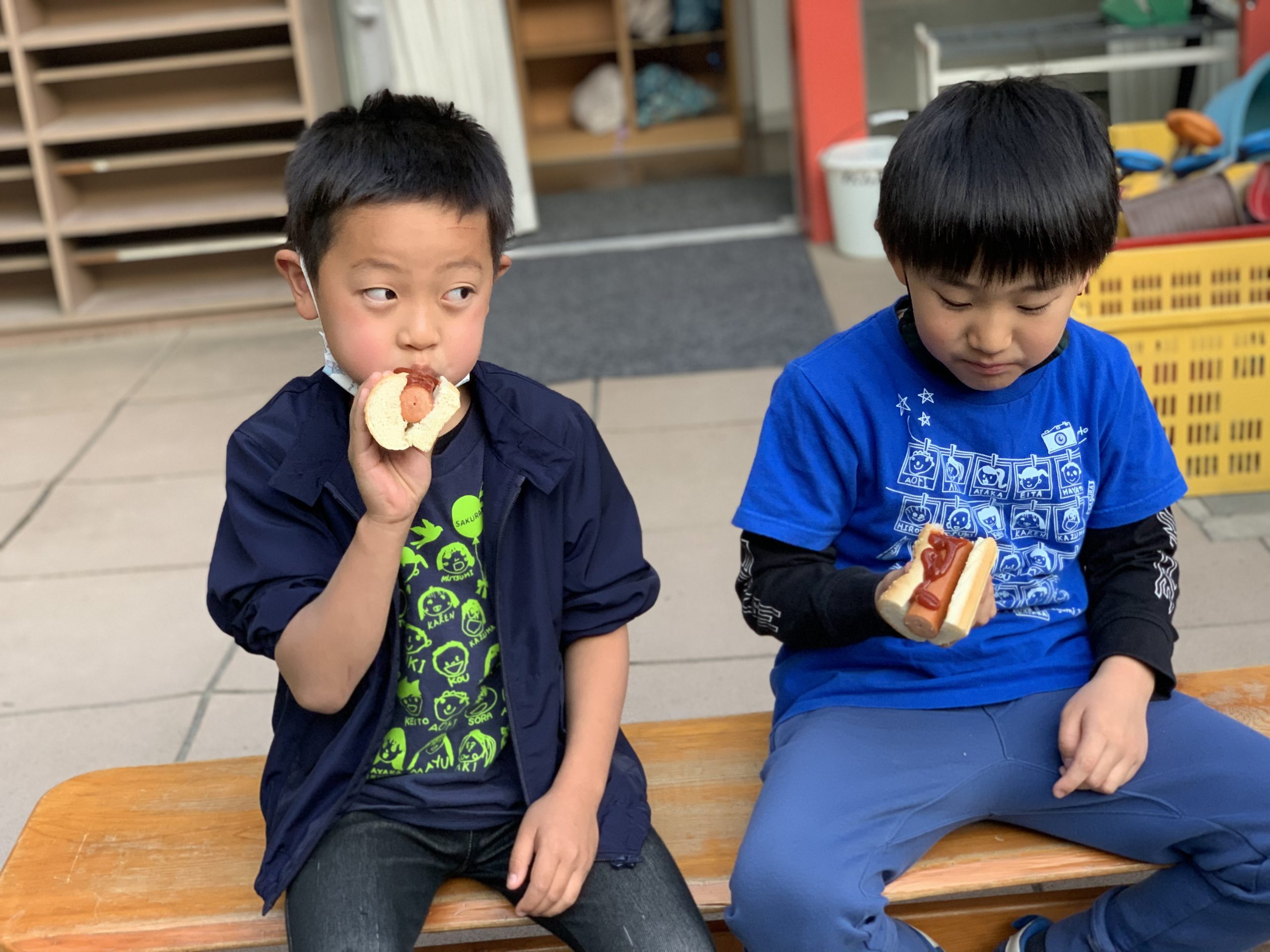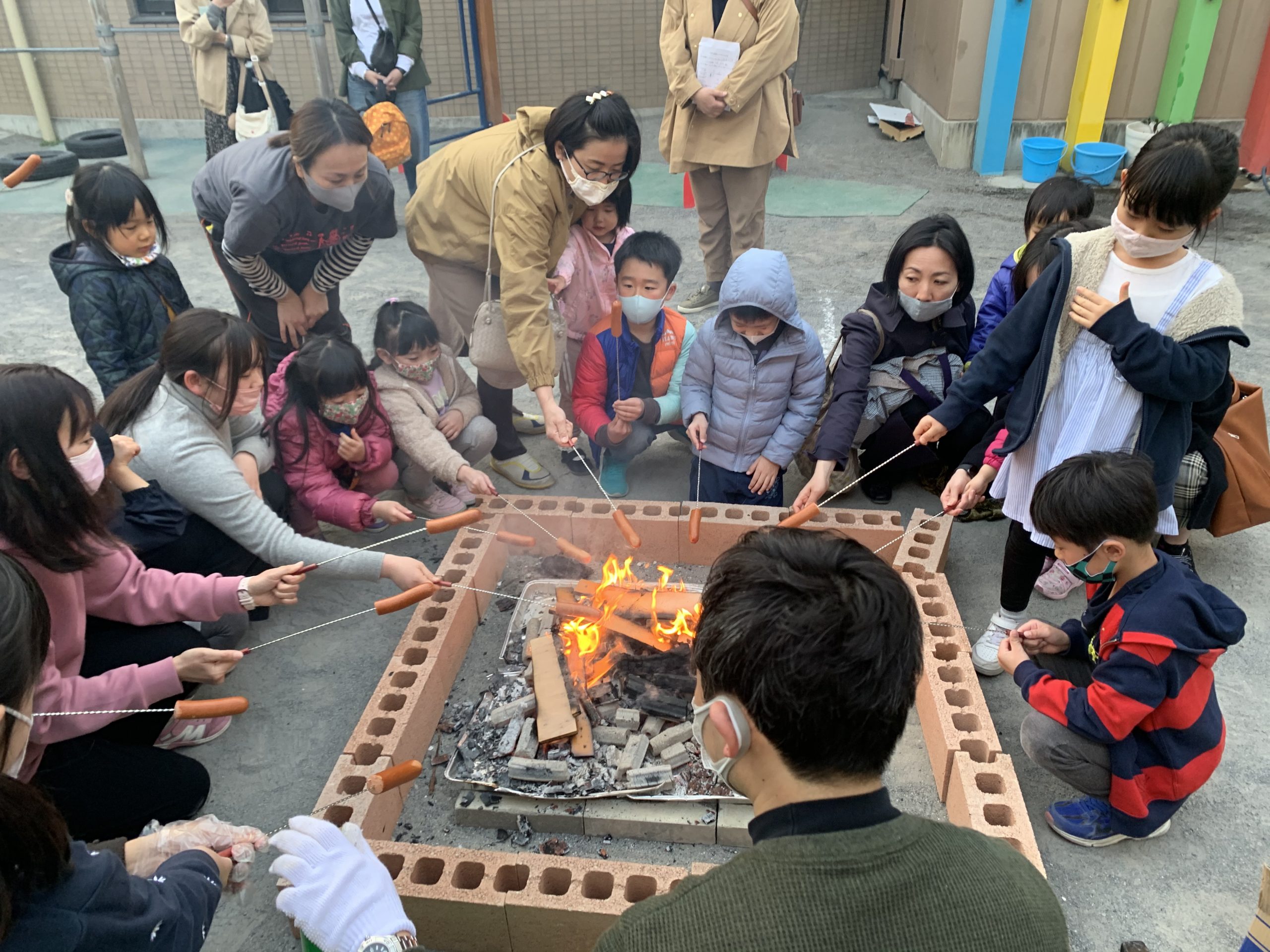 夕方に幼稚園に来ることも特別。園庭で、ホットドッグを食べるのも特別!会の終わりには、スペシャル花火も上がり…短い時間でしたが、楽しい『特別』な時を過ごせました。