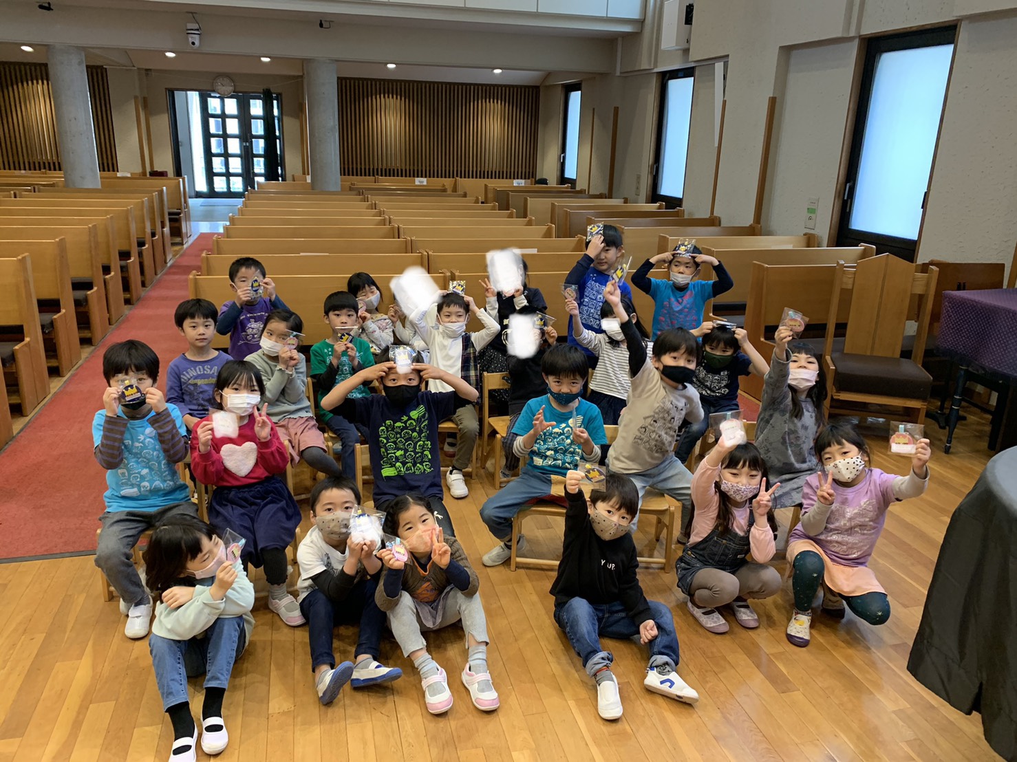 いよいよ明日は卒園式。この一年、神さまに守られ、たくさんの方々に支えられながら元気に過ごすことができました。明日も元気に登園してくださいね。
