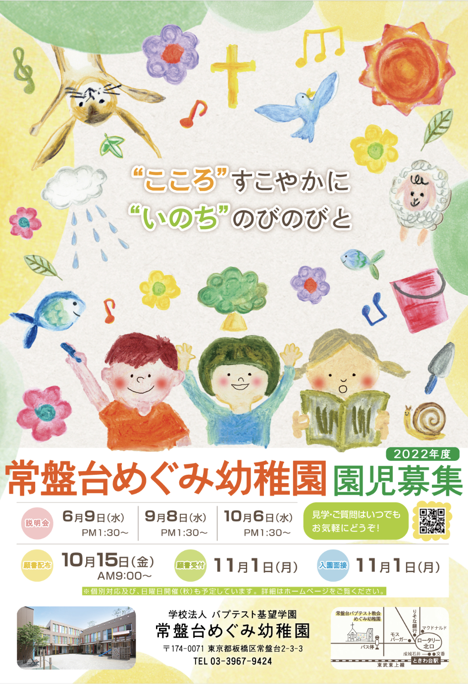 2022年度 新入園児募集のお知らせ お知らせ 2021.04.01 新年度が、始まります。新しい一年も子どもたちが、自分らしく・笑顔で過ごせる幼稚園でありたいと願っています。 2022年度『新入園児募集』ポスター掲示のご協力いただけます方は、お知らせください。
