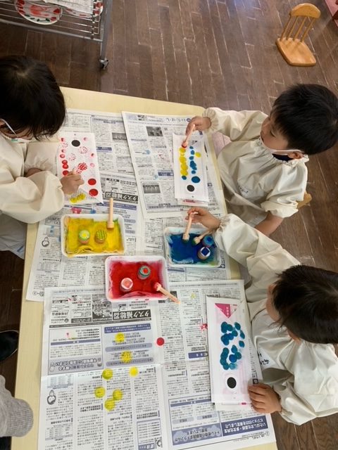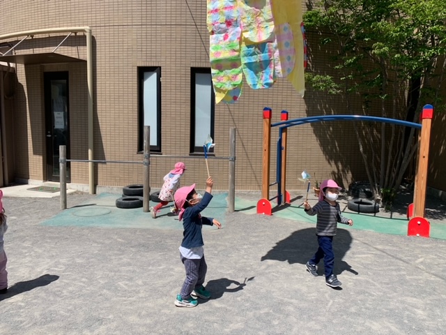こいのぼりは赤・黄・青の3原色を使って素敵なこいのぼりができました!