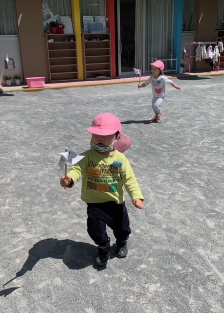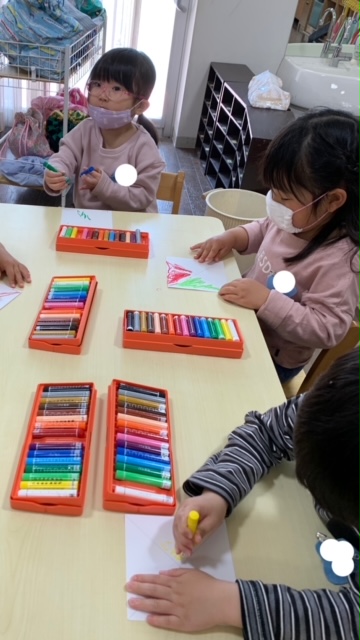 かざぐるまはクレヨンを使って、線の中をきれいに好きな色で塗りました。