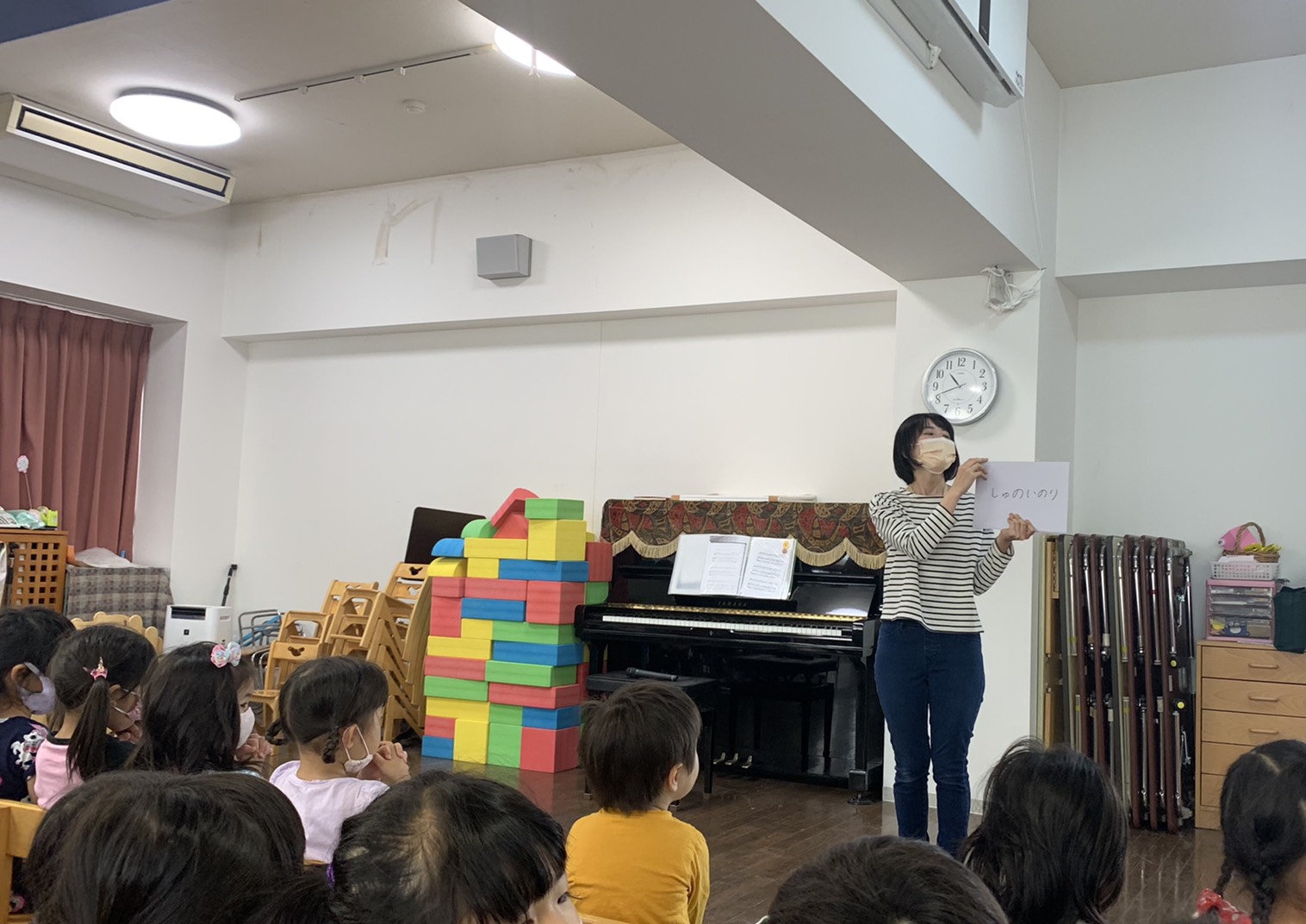 今日は合同礼拝でした。「主の祈り」のお話を聞きました。礼拝の最後に、みんなの心を合わせて主の祈りをしました。