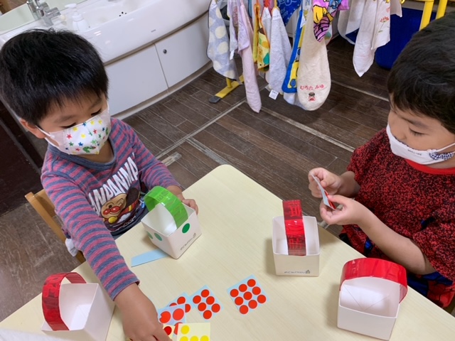 シールをいっぱい貼っておみせやさんごっこを楽しみにしています♪