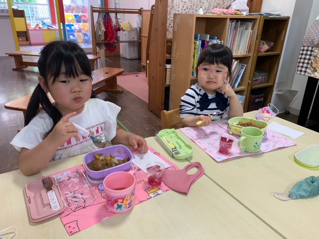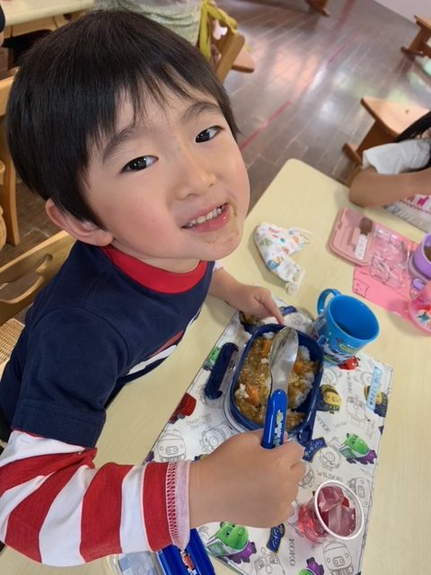 ゆり組のお友だちにとって初めてのカレー会食でしたね。