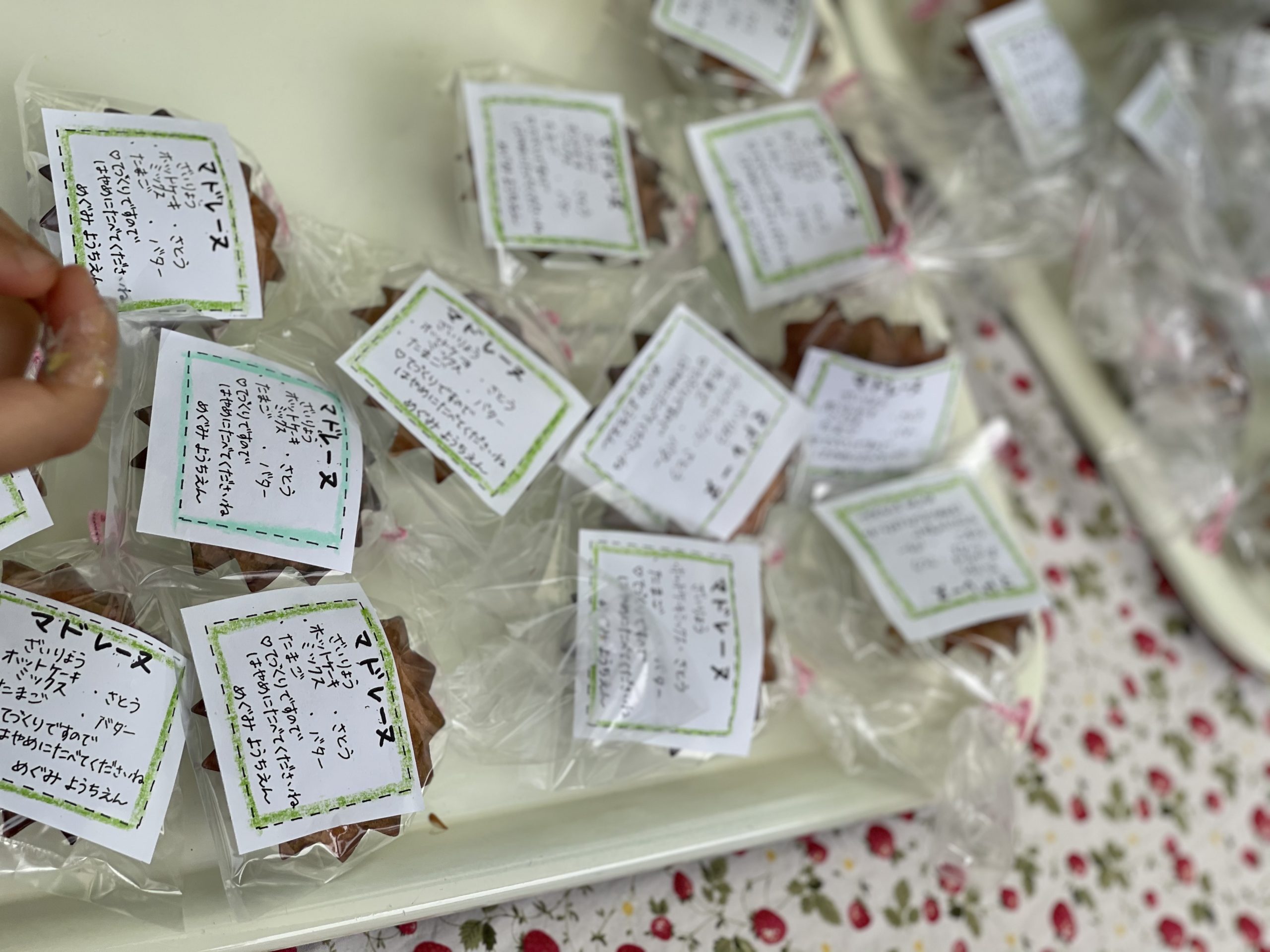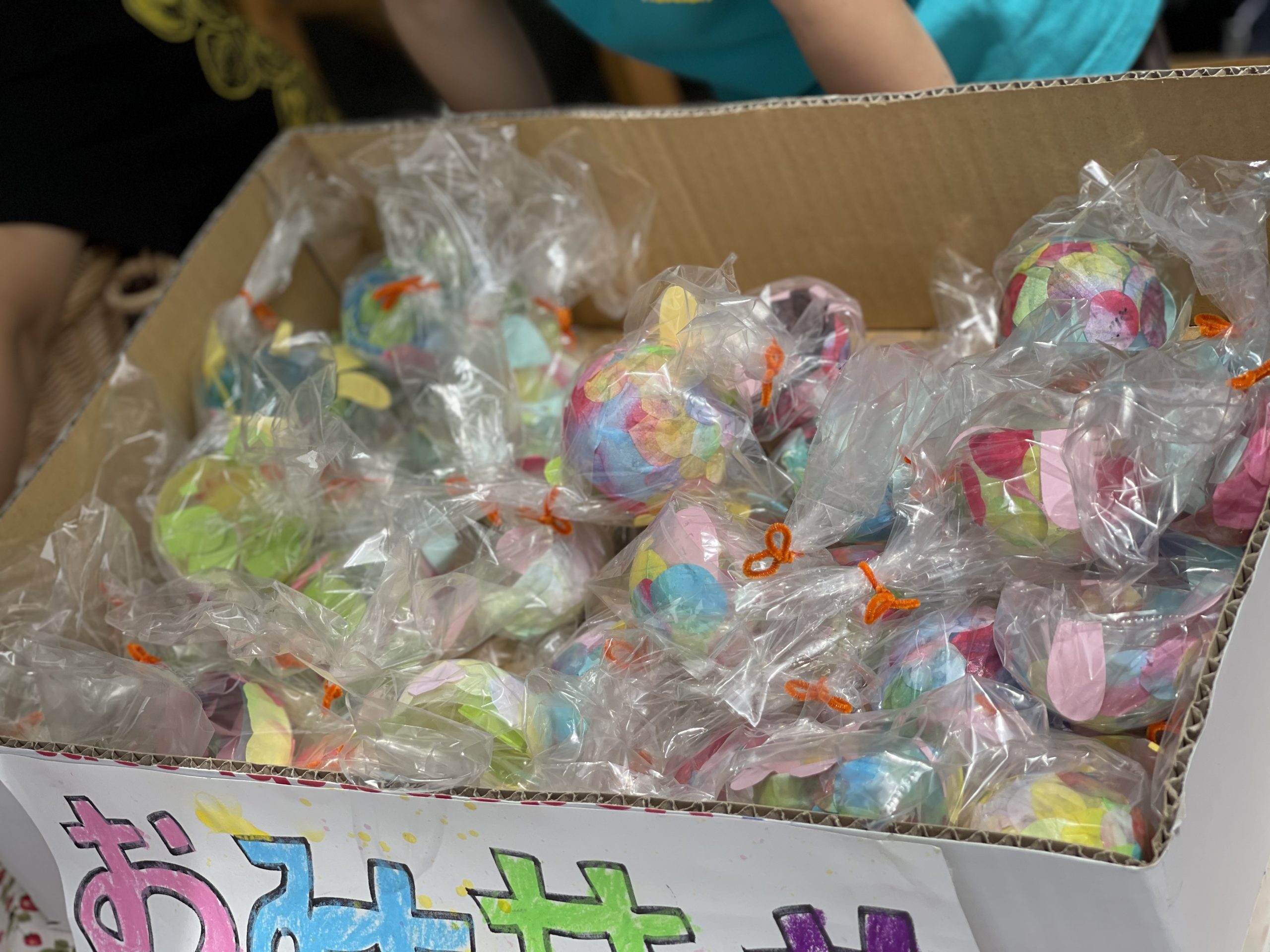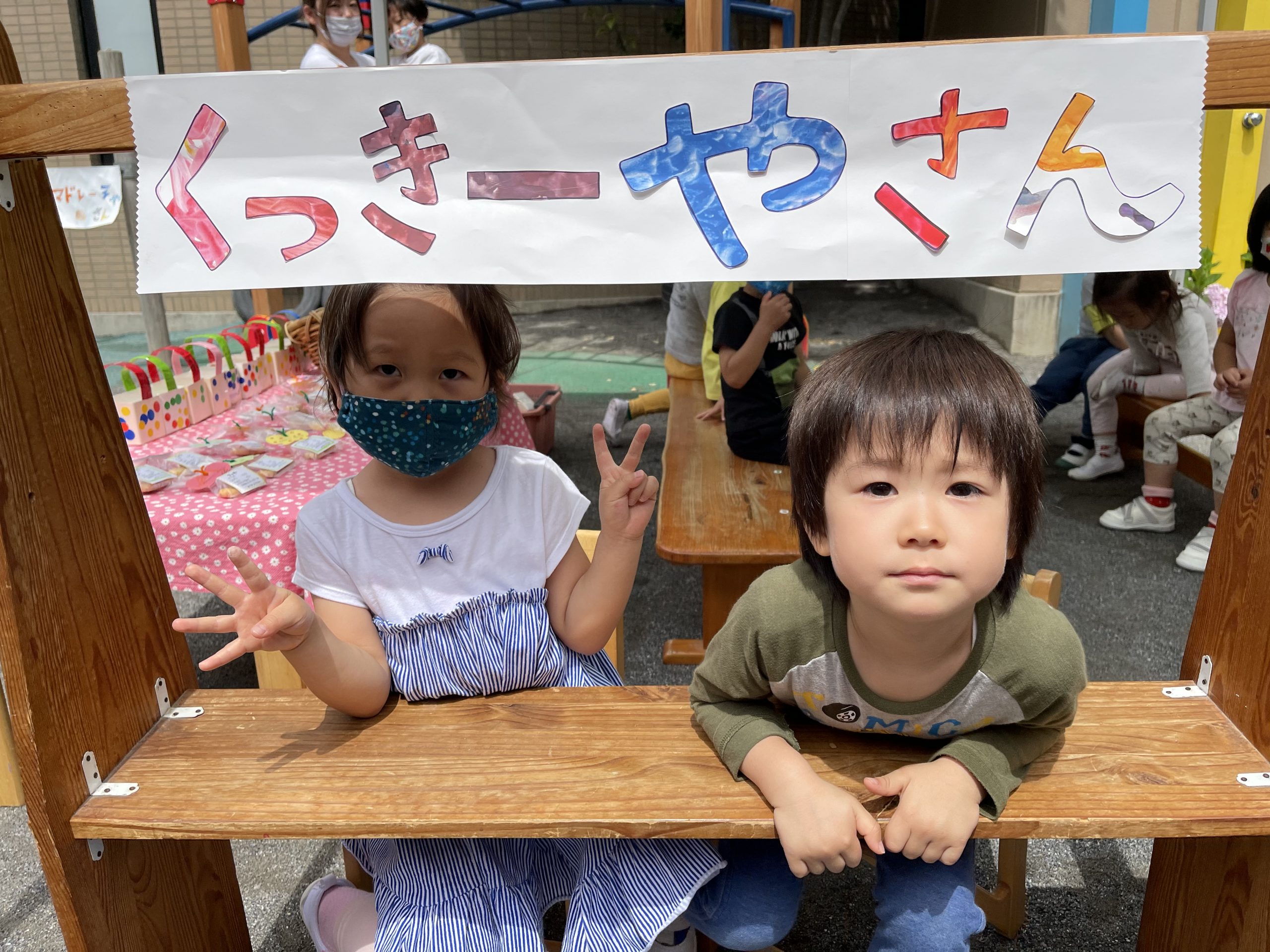 子どもたちは、少しずつ品物作りをしてこの日を楽しみに待ちました。小さいお友だちのために、お財布にお金を入れたり、看板を作ったり…昨日は、お台所を交代で使い…美味しい品物も作りましたね。一つ一つ皆で、楽しんでいましたね。