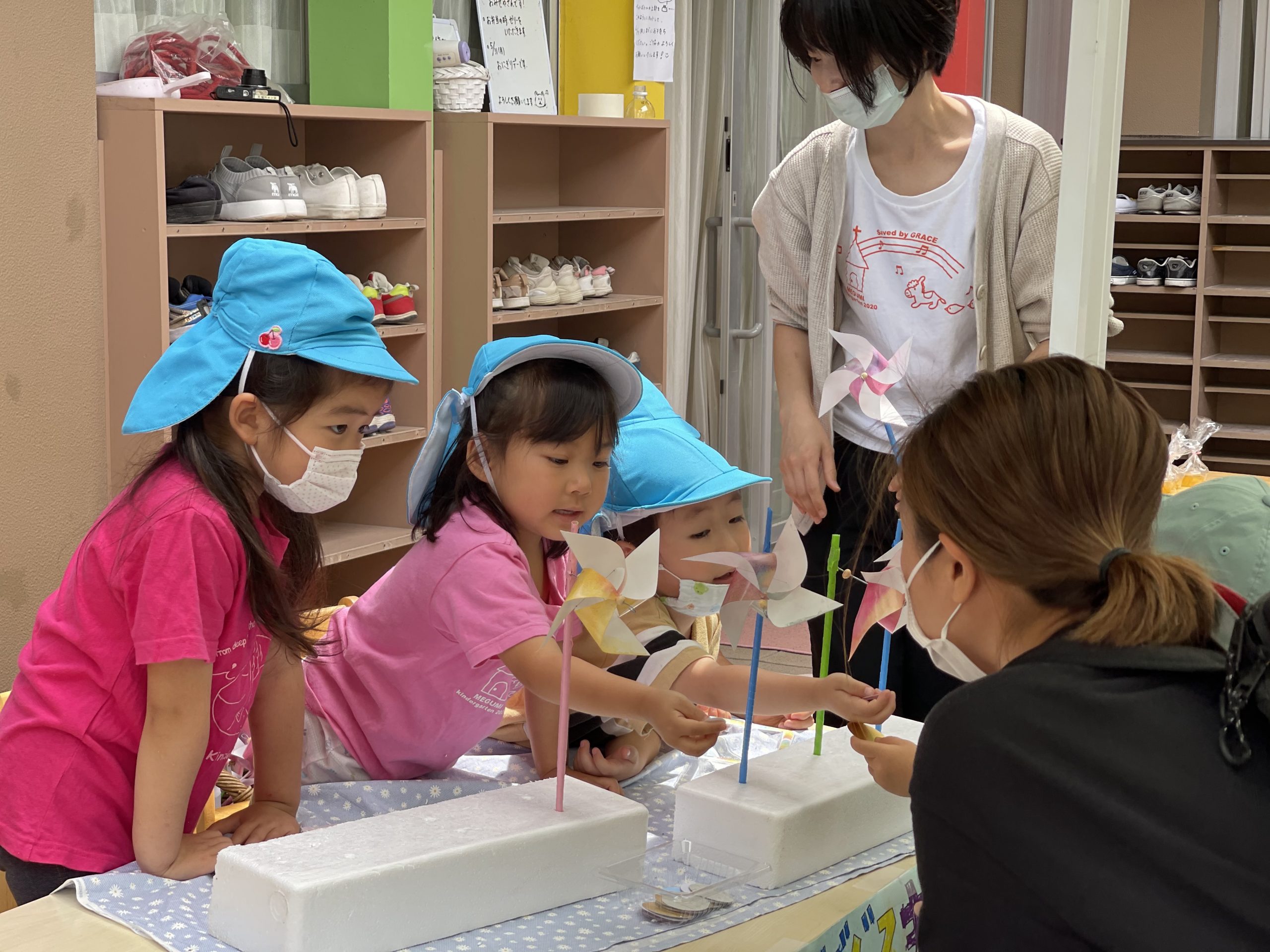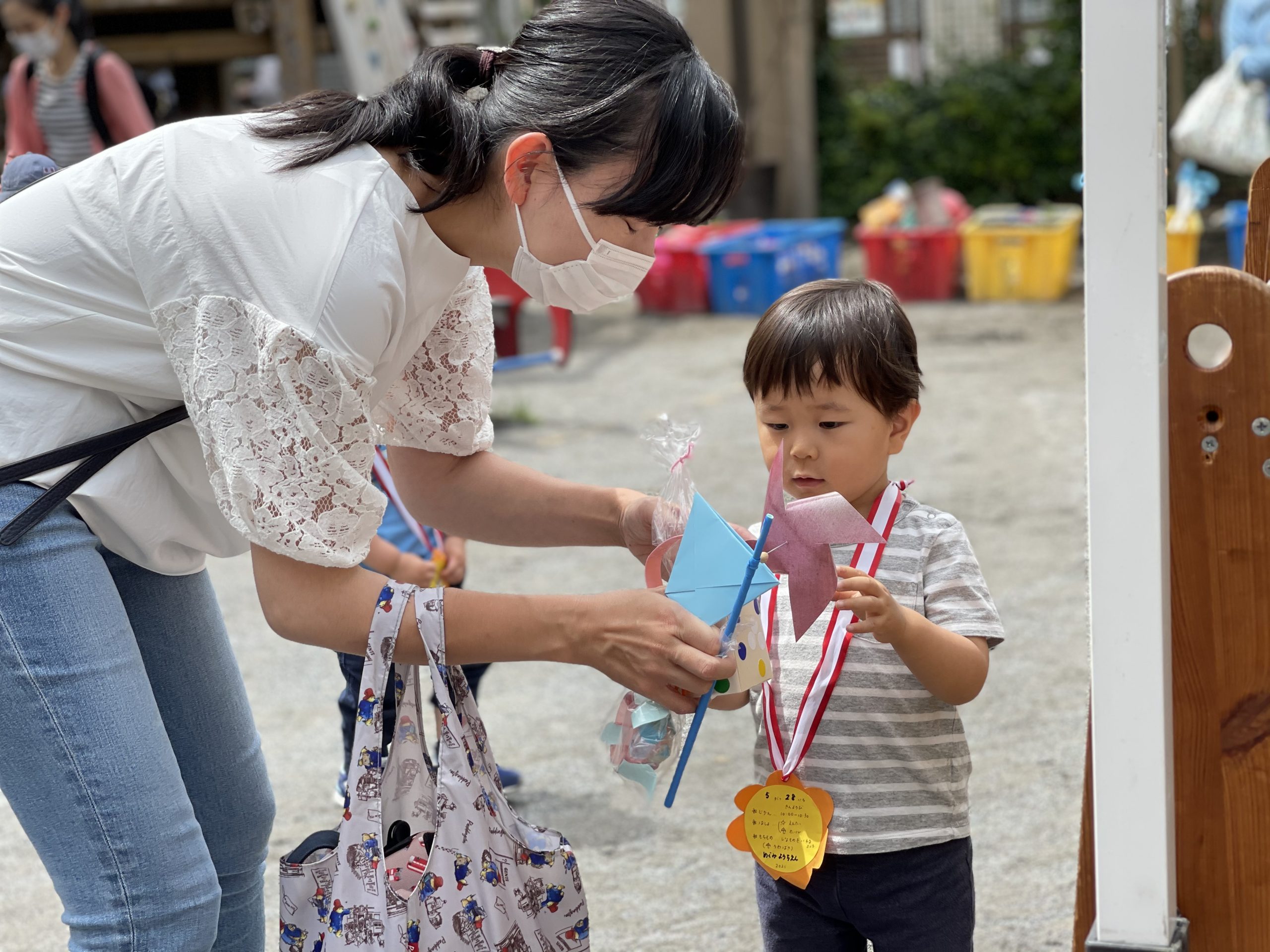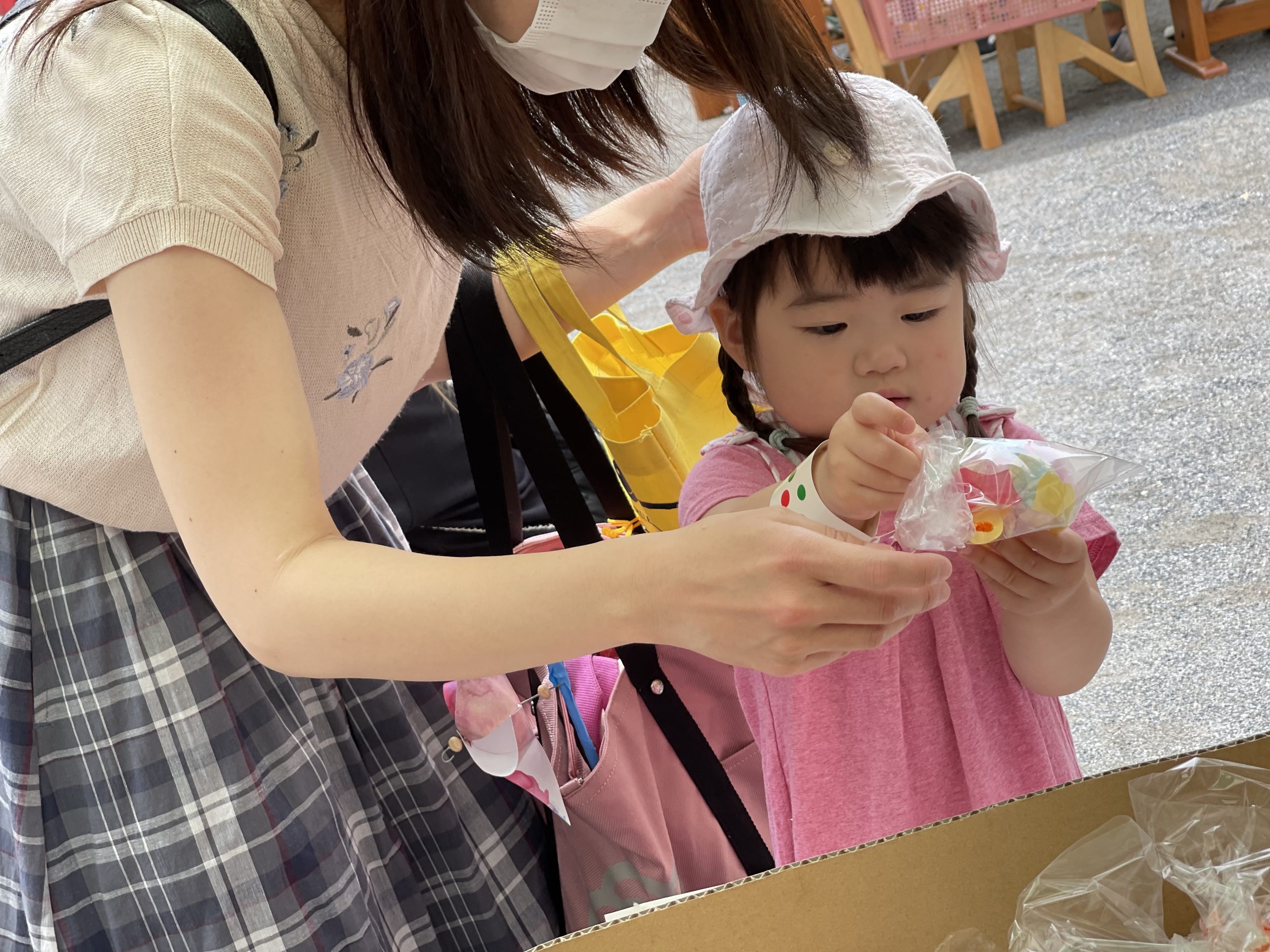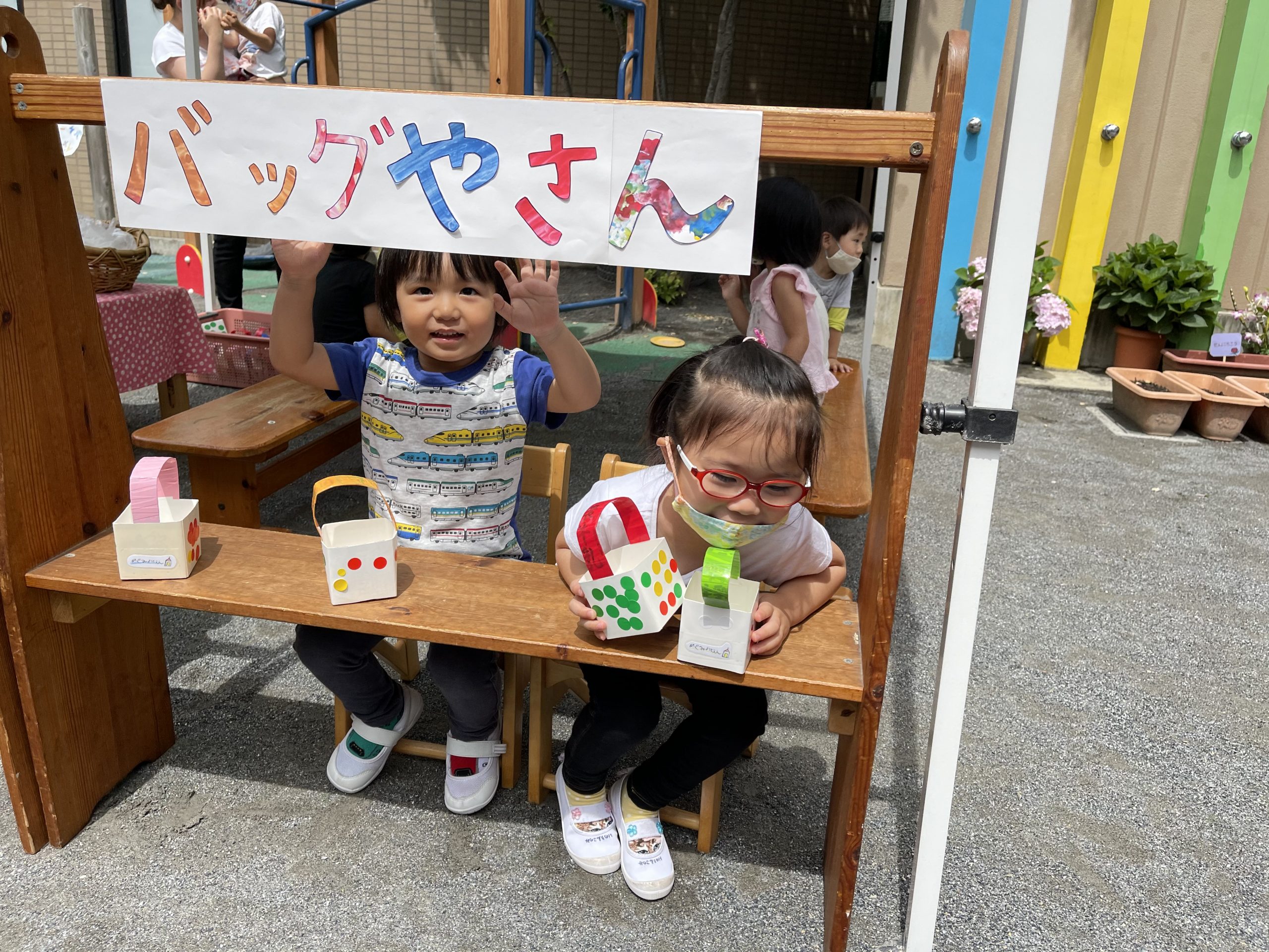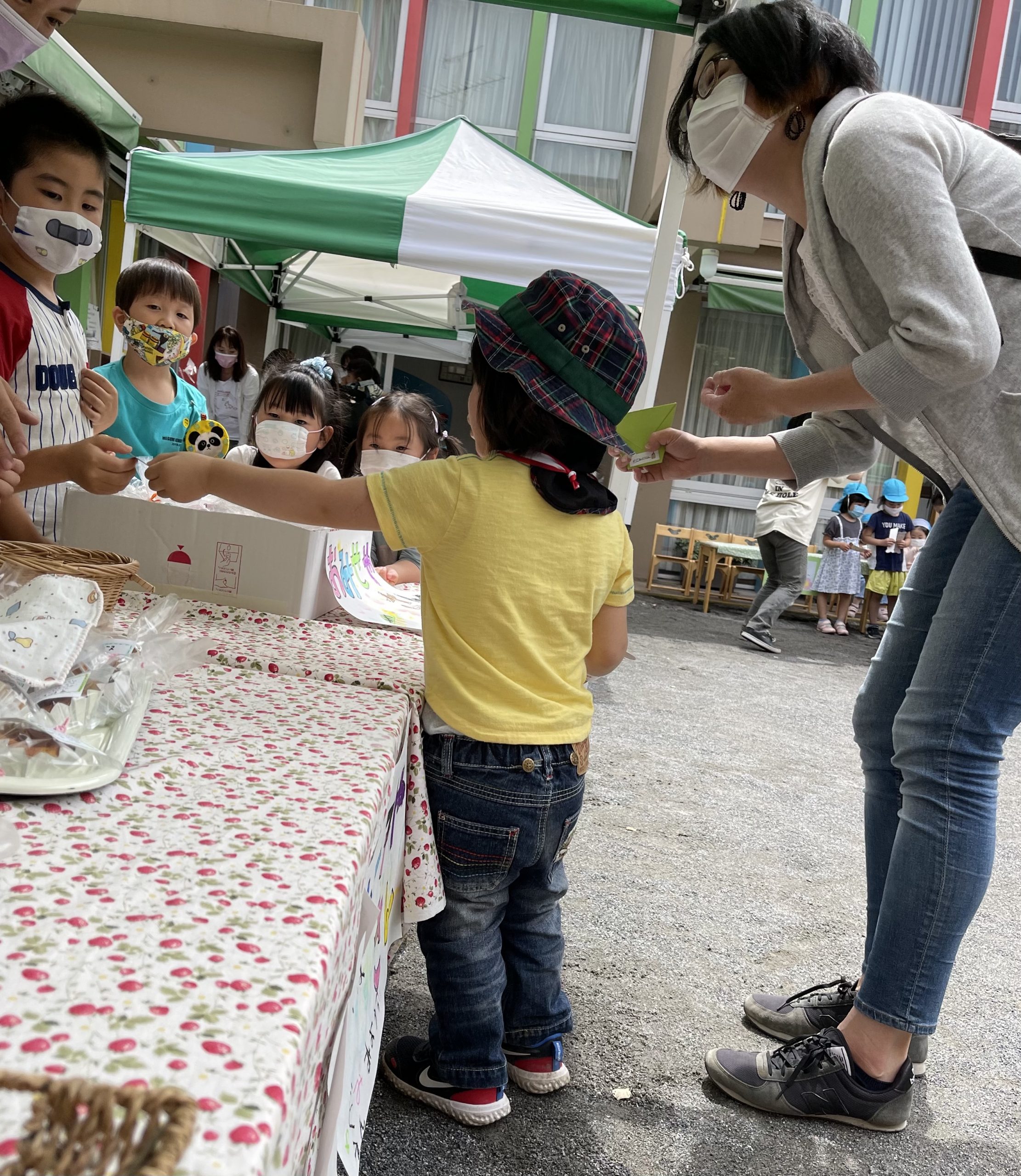 感染防止のために、園庭のみでの開催を予定し…お天気も心配しましたが「おみせやさん日和」‼︎青空の下で、開催できました。小さなお友だちは、両手に品物を持ち…嬉しそうにおうちの方と帰って行きました!楽しんでもらえたかな??