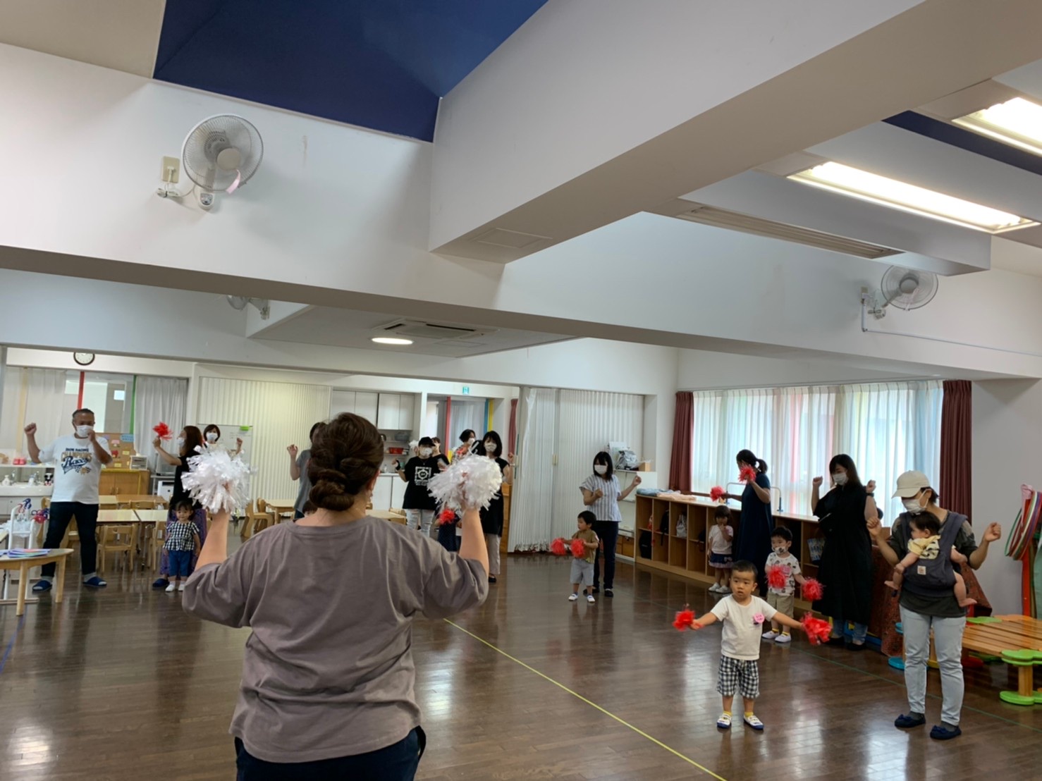 お片付けをした後は、ポンポンを持ってエビカニクスを踊りました。みんな上手でしたよ!