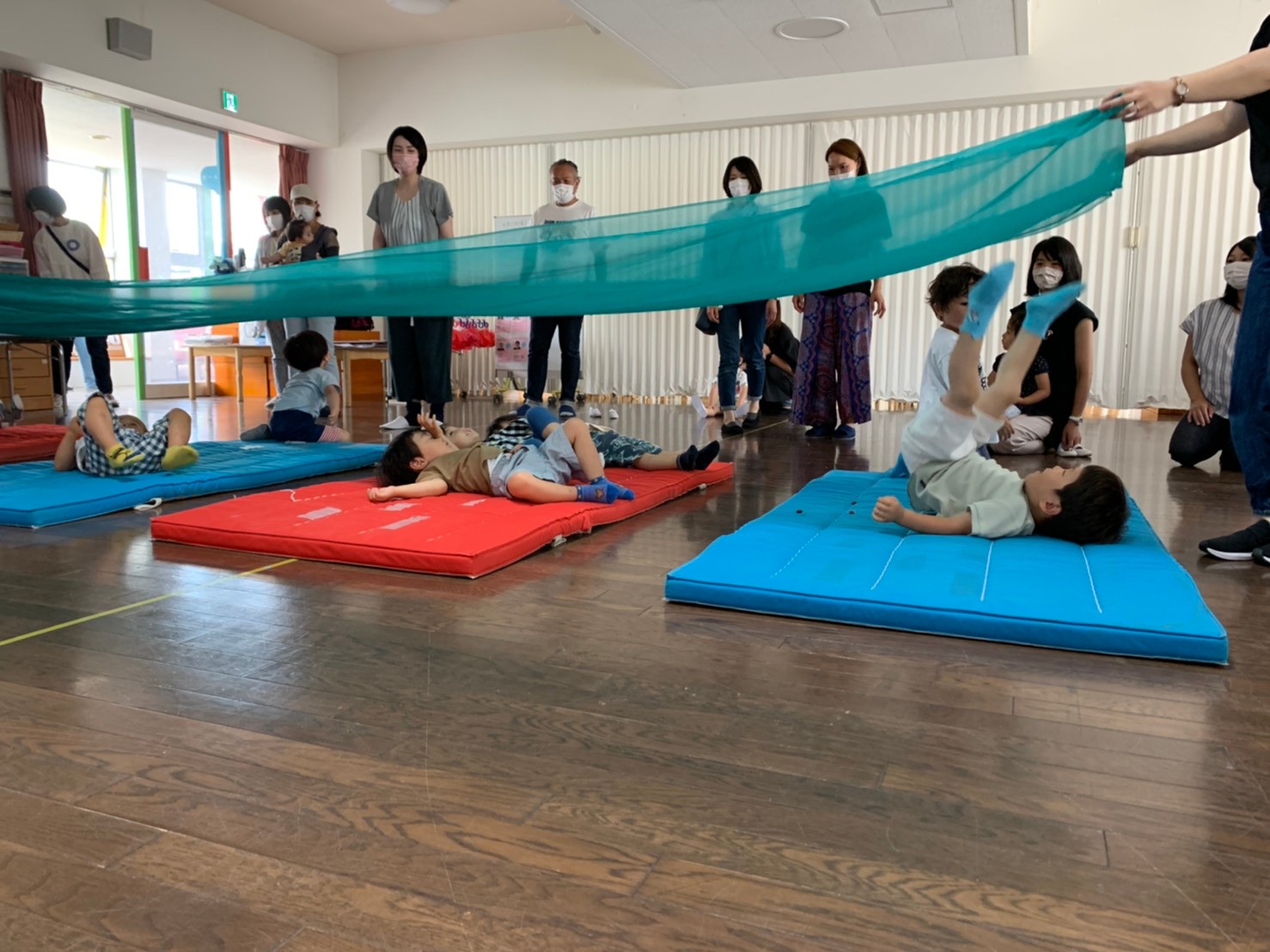 暑くなってきましたので、もも組の自由遊びはホールで行います。