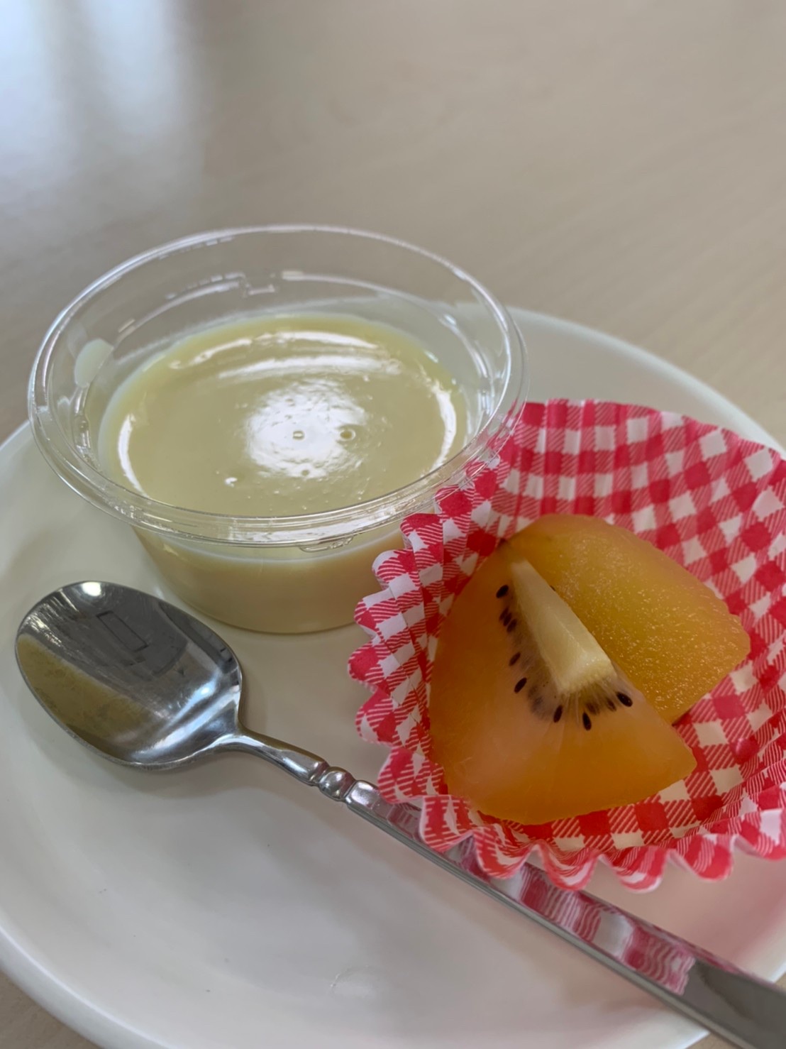 今日はプリンとキウイをいただきました。