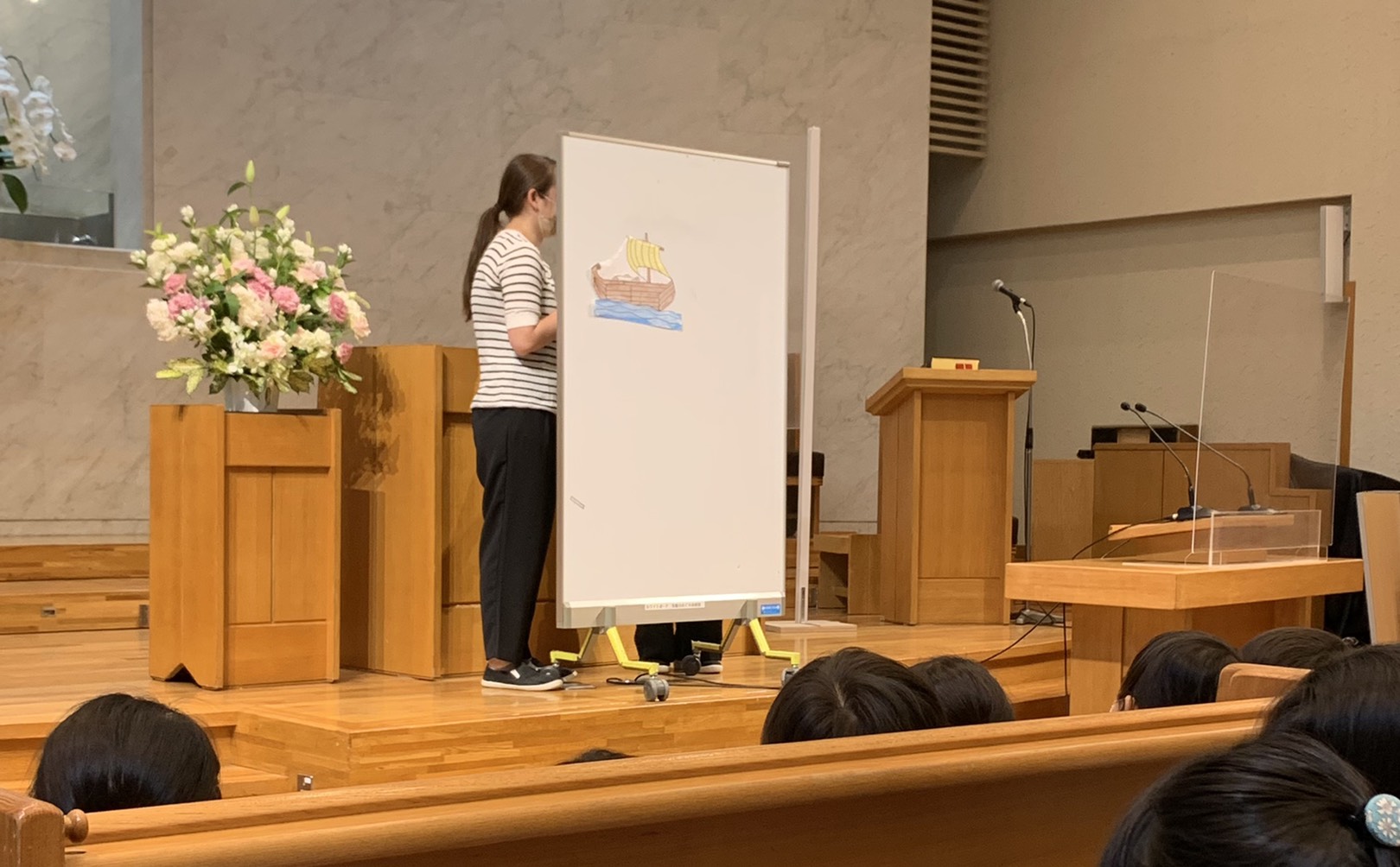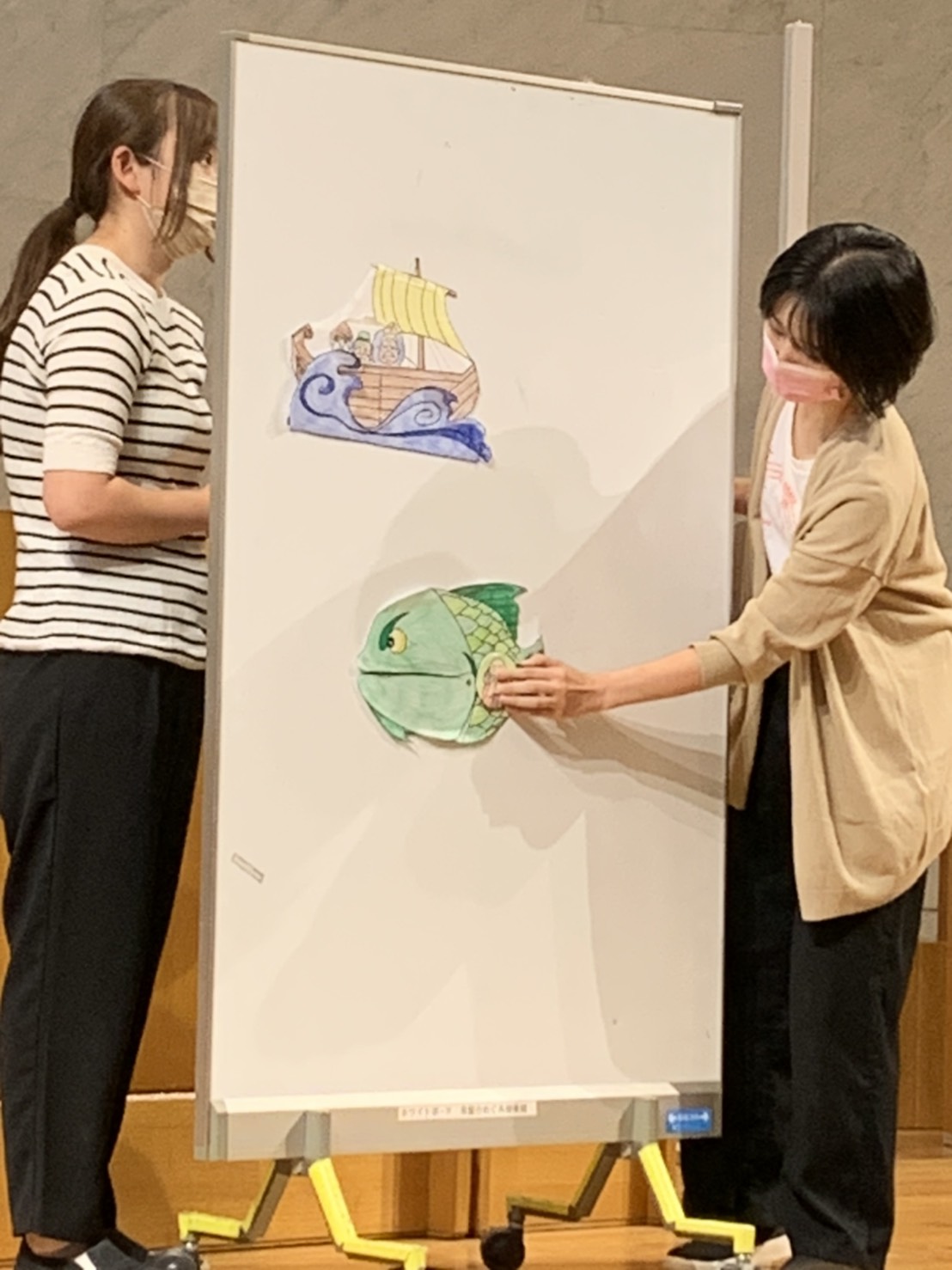 今日は、先生方によるヨナのお話をパネルシアターで、見ましたね。おうちの方々・教会の方々と一緒に賛美し、お祈りし、お話を聞くことが出来…嬉しかったですね。