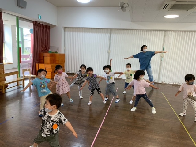 今日は音楽遊びを楽しみました。音楽に合わせて楽器を鳴らしたり、体を動かしました。