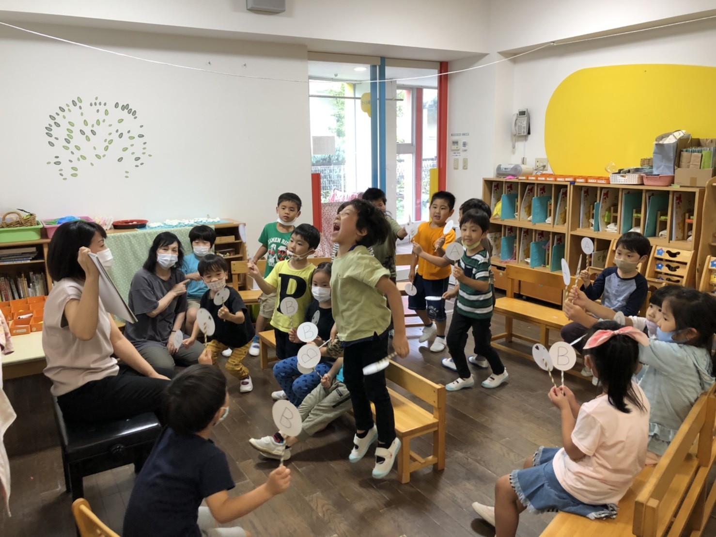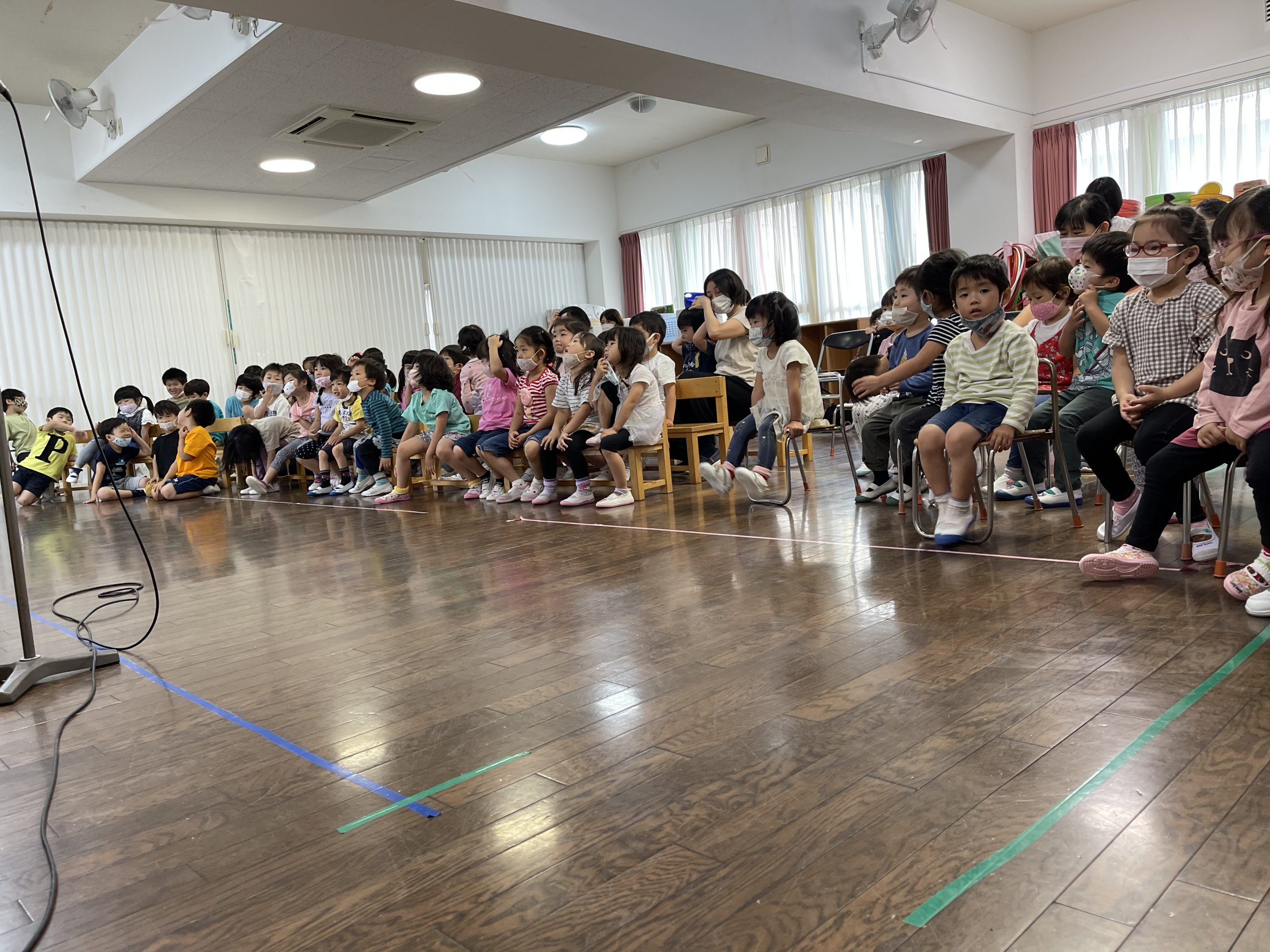 今日は7月生まれのお友だちのお誕生日会でした。ヤッホッホ夏休みを歌って、礼拝をして、お祝いの後に、さくら組のお誕生日のお友だちのお母様が、お楽しみ会をしてくれました。