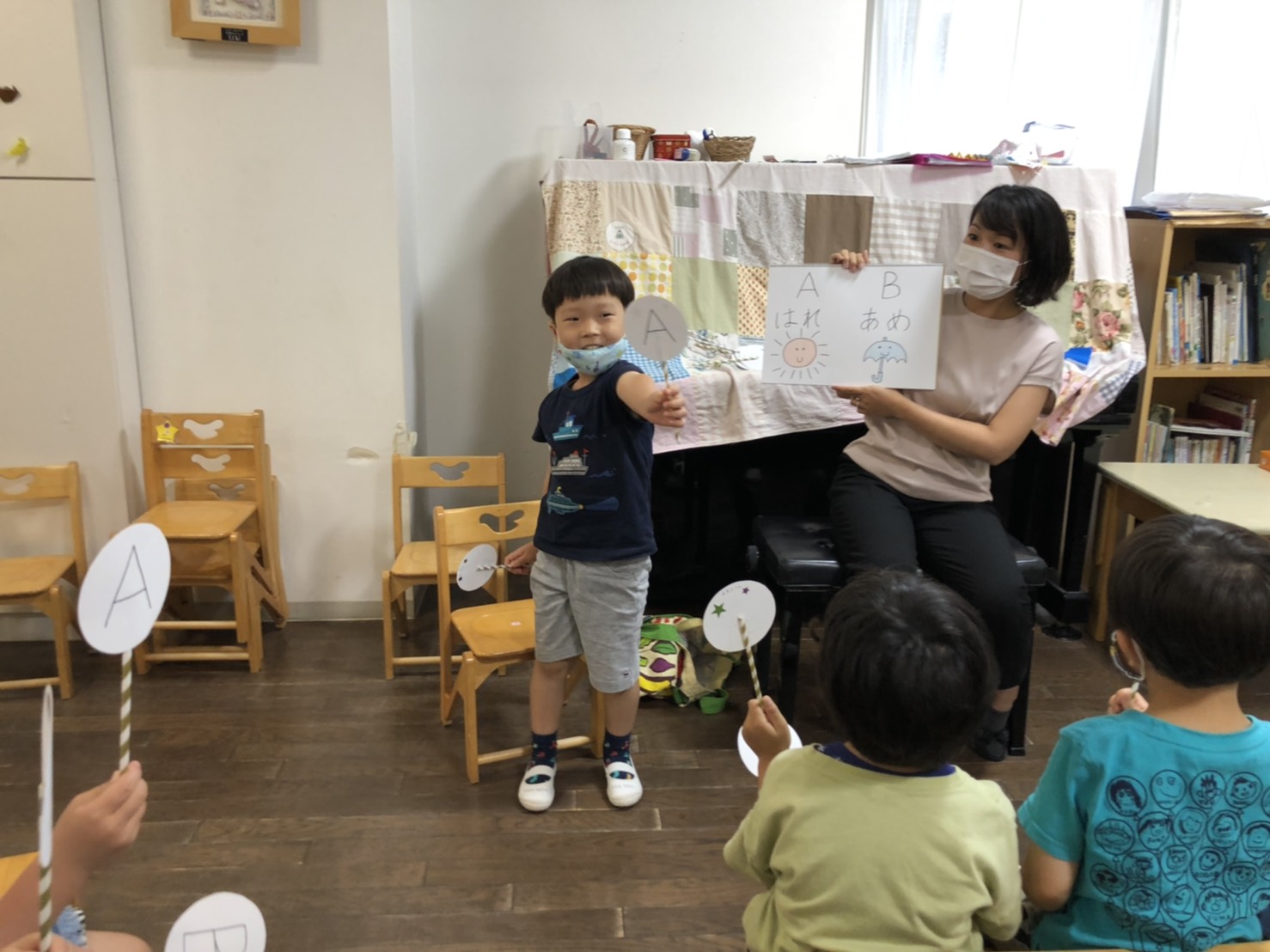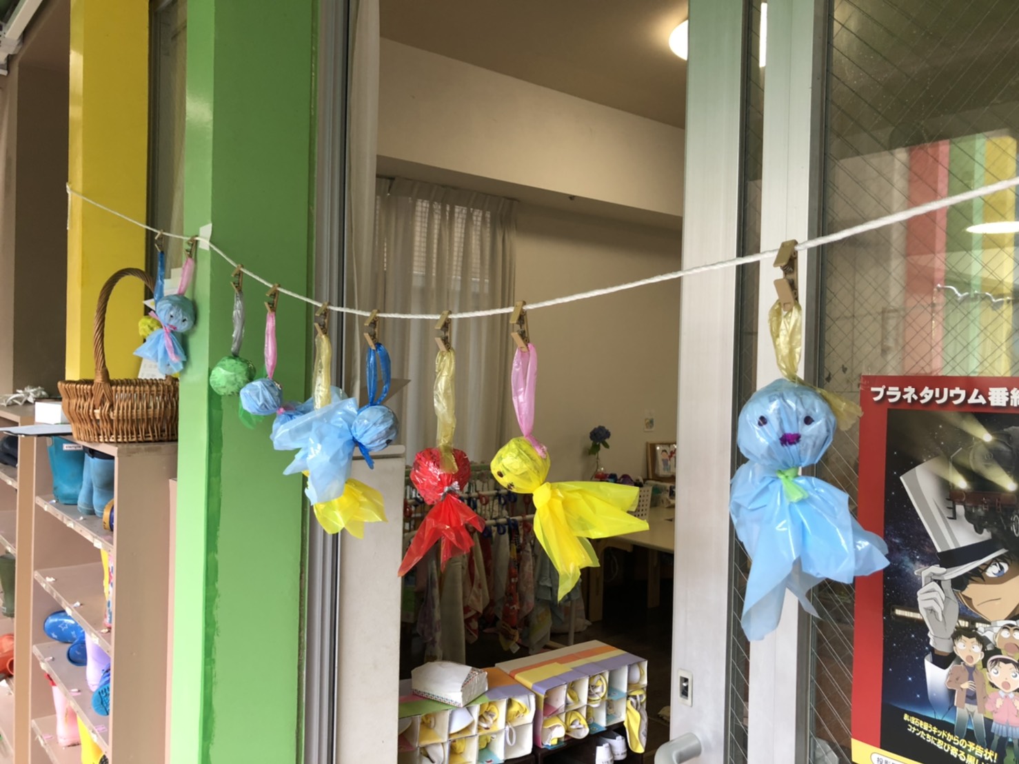 昨日は『スーパーてるてる』という絵本を読みました。今朝は子どもたちとスーパーてるてるを作ると、お昼には雨があがりました!「お誕生日会の間に、スーパーてるてるが空に飛んでいったんだね」とお話ししていました☆