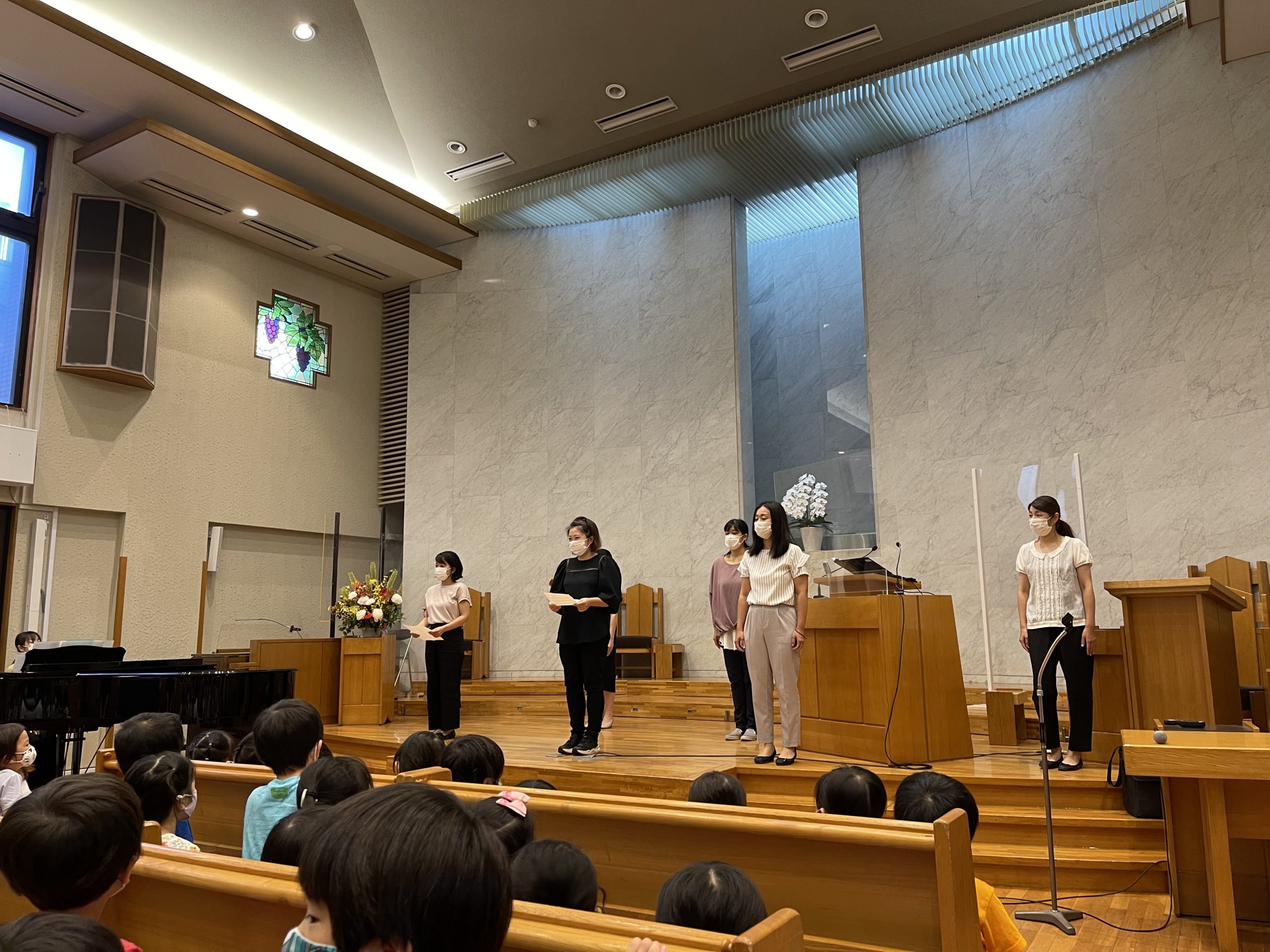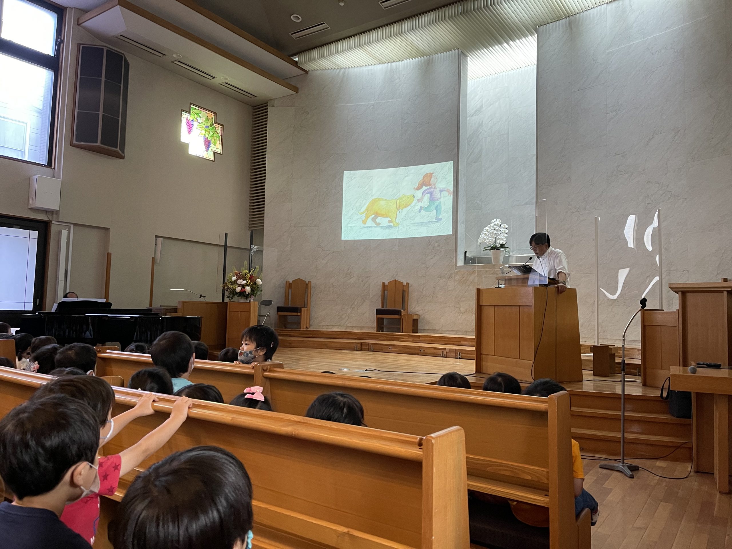今学期最後の水曜礼拝。おうちの方と教会の方と一緒に礼拝をしました。