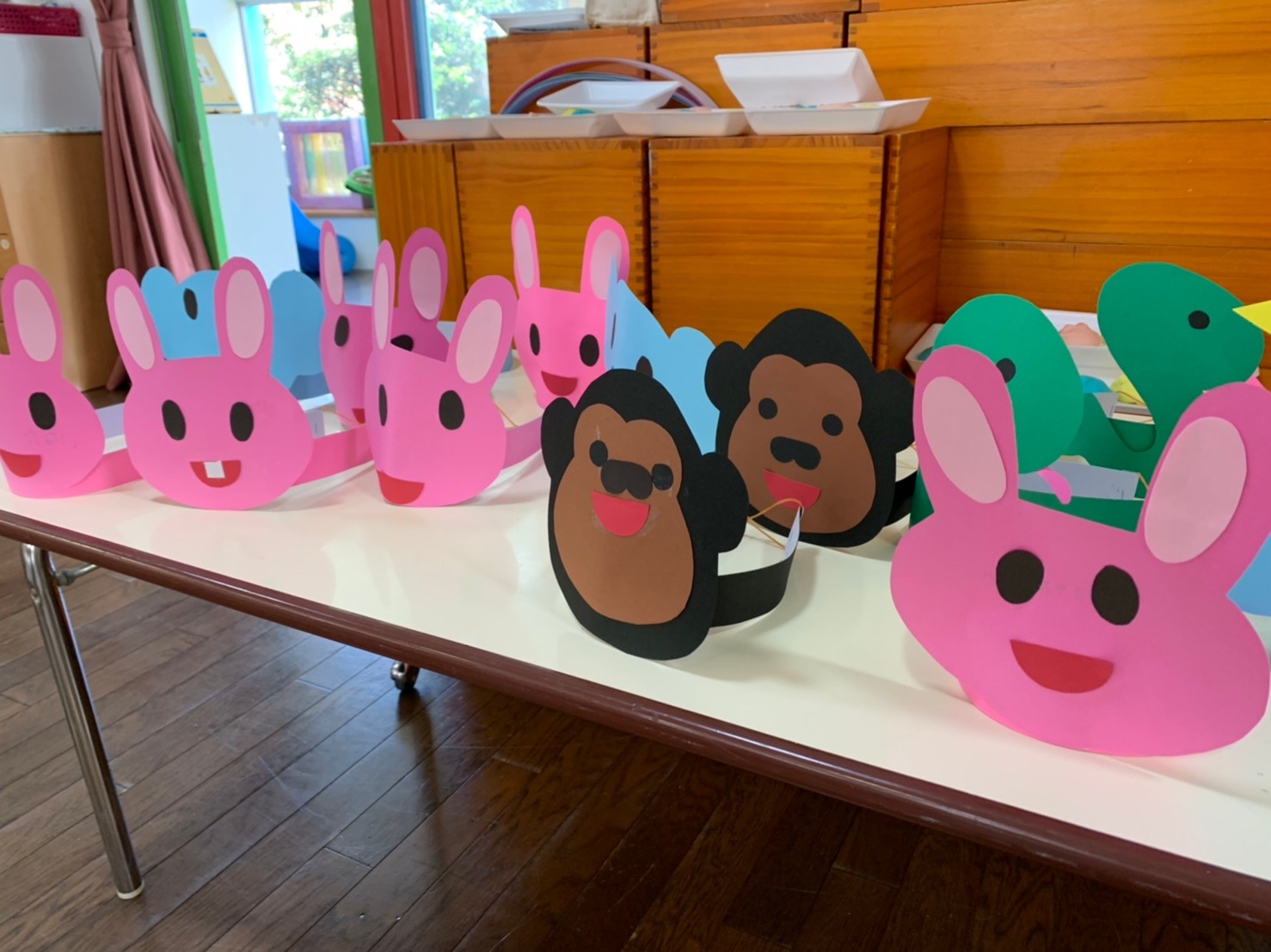 今日はお面も作って、かぶって体操しました。