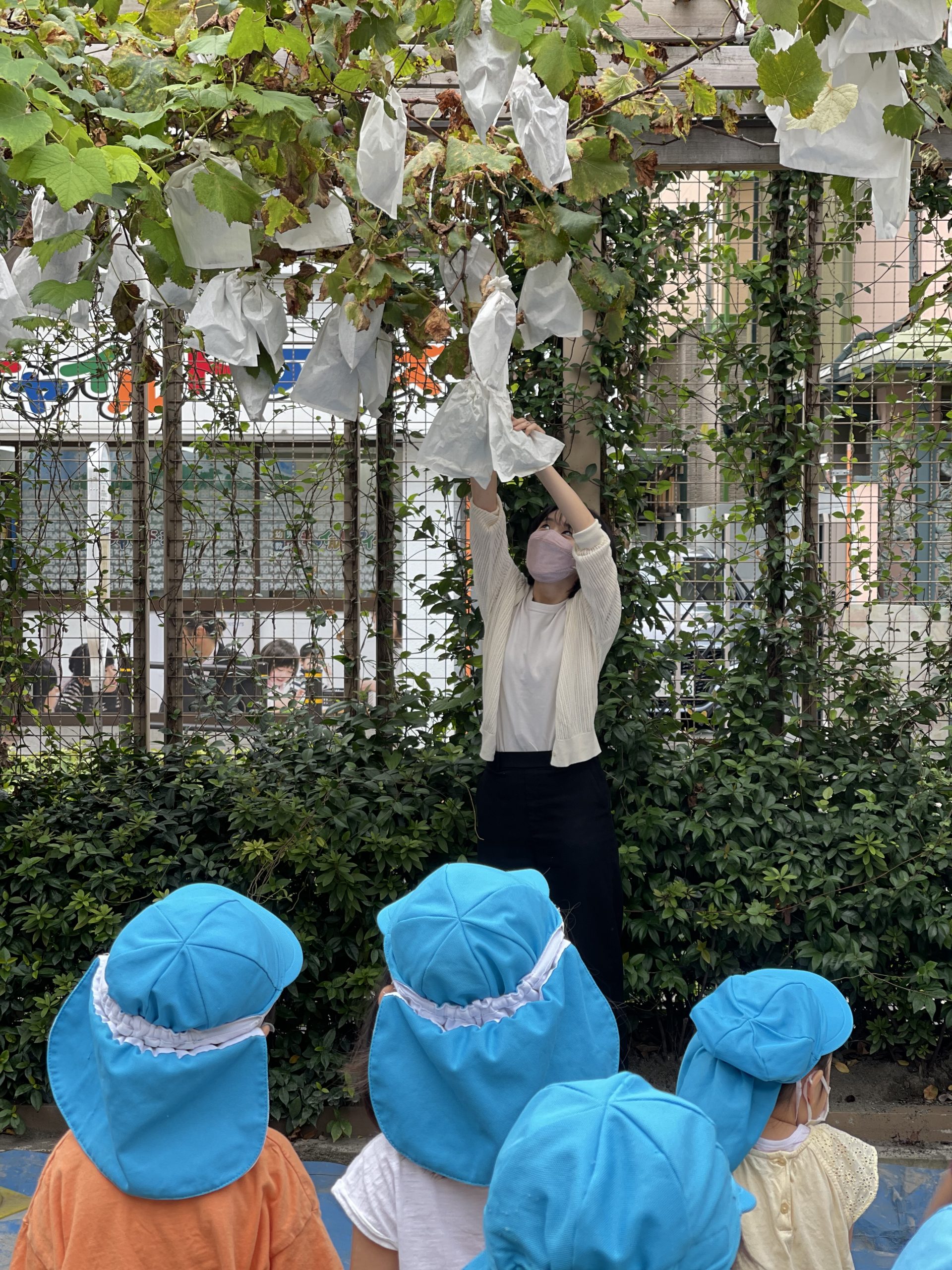 昨日・今日と「ぶどうの収穫」をしました。楽しみに待っていた収穫!!お店で売っているものとは、また違って…とびっきり美味しかったですね。