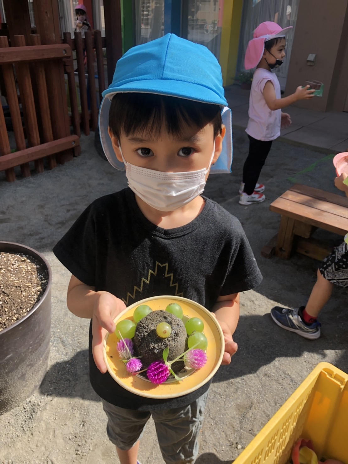 近頃は、ぶどうやお花をきれいにのせることに夢中になっているお友達が多いようです。