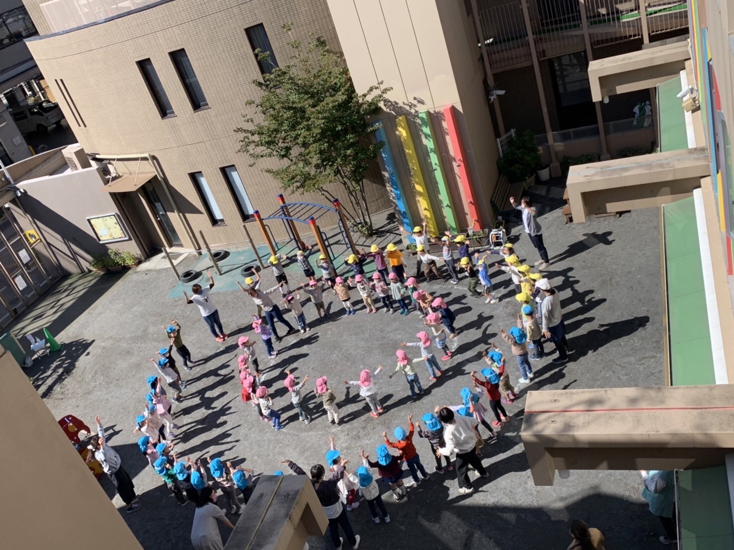 お絵描きのあとは、運動会ごっこをしました。他の学年のダンスにも挑戦しました。