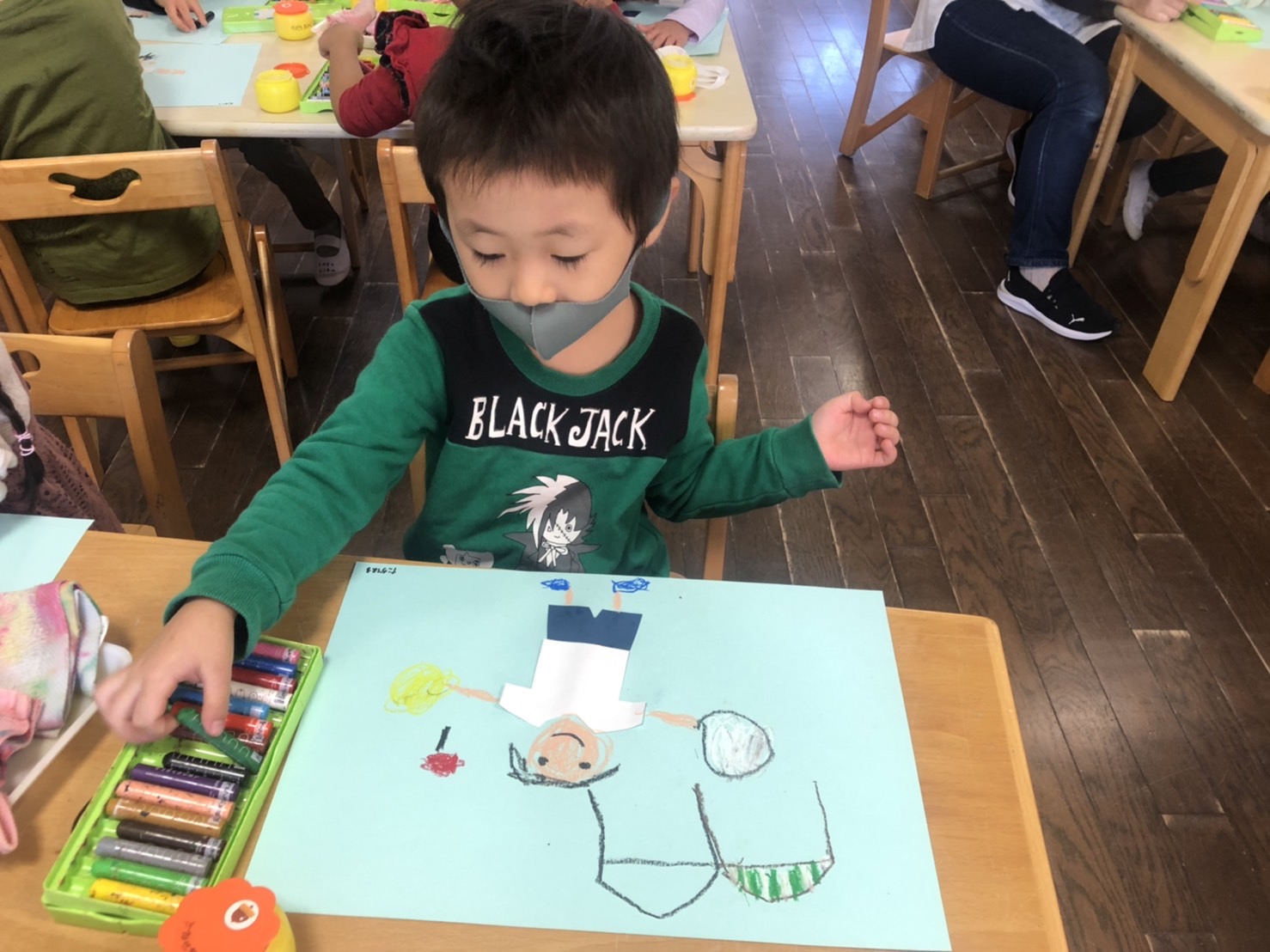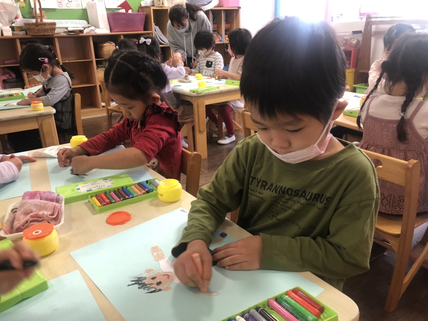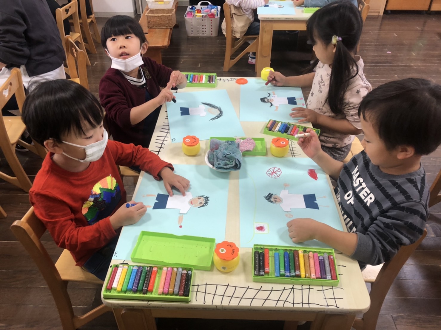 今日、たんぽぽ組では運動会の絵を描きました。