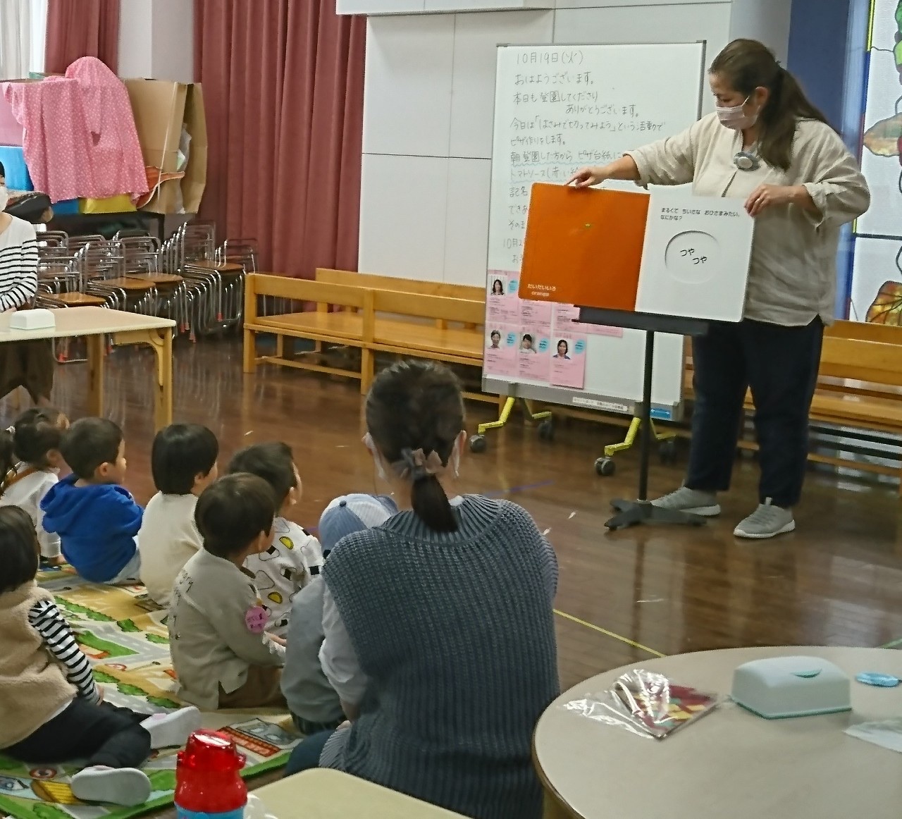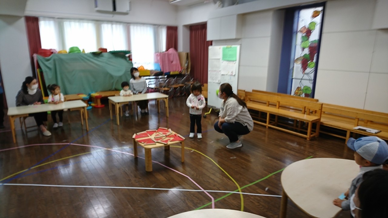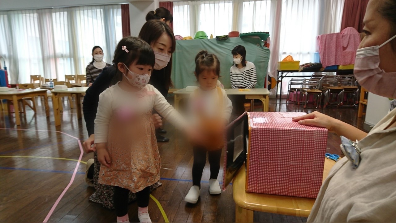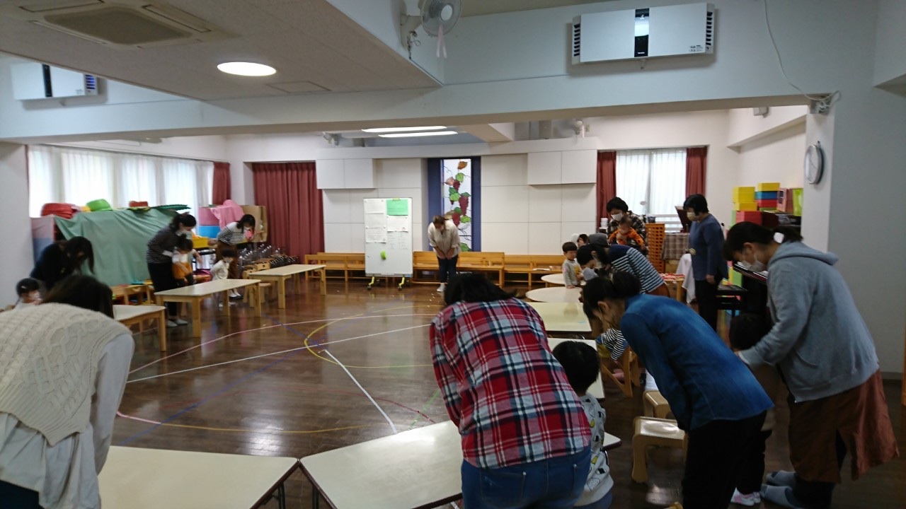 肌寒い朝になりましたが、もも組には元気なお友だちがたくさん集まりました。