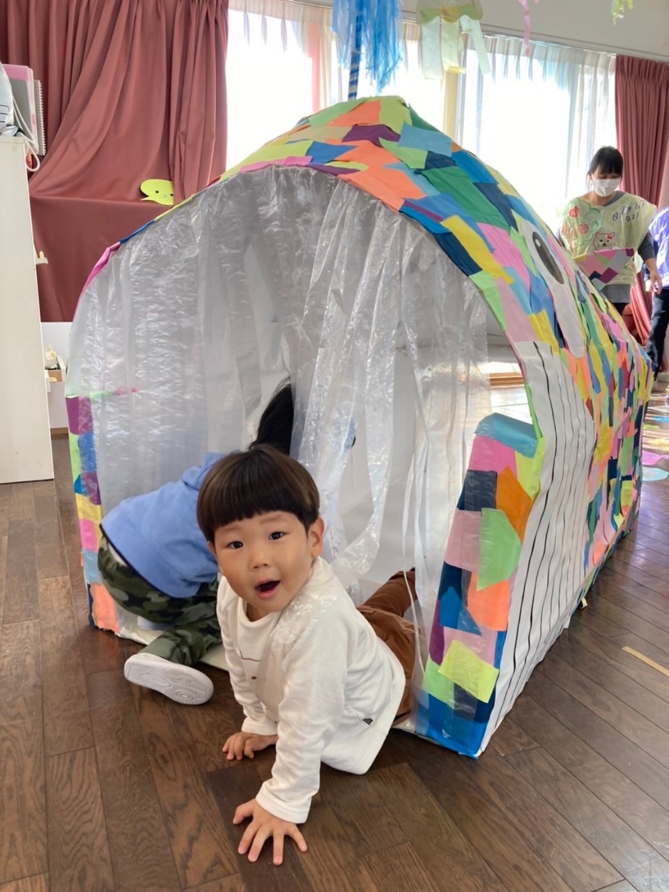 大きなくじらトンネルを抜けると、輪投げに魚釣り、ボール投げ。