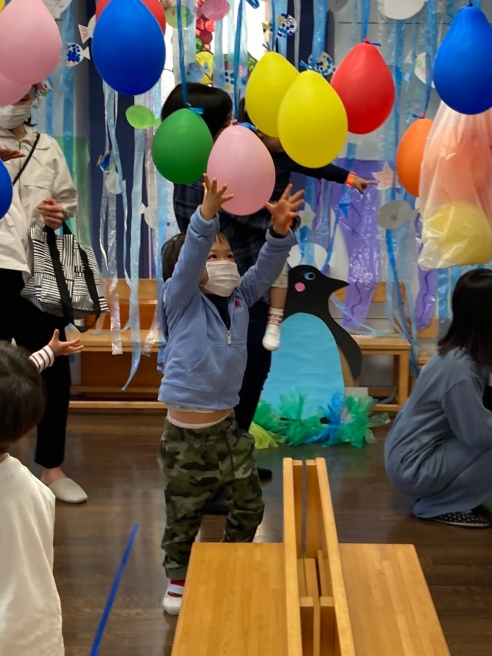 階段を上がってきたももさんもおうちの方も「わぁ〜!」と歓声とキラキラ笑顔で登園してきました。