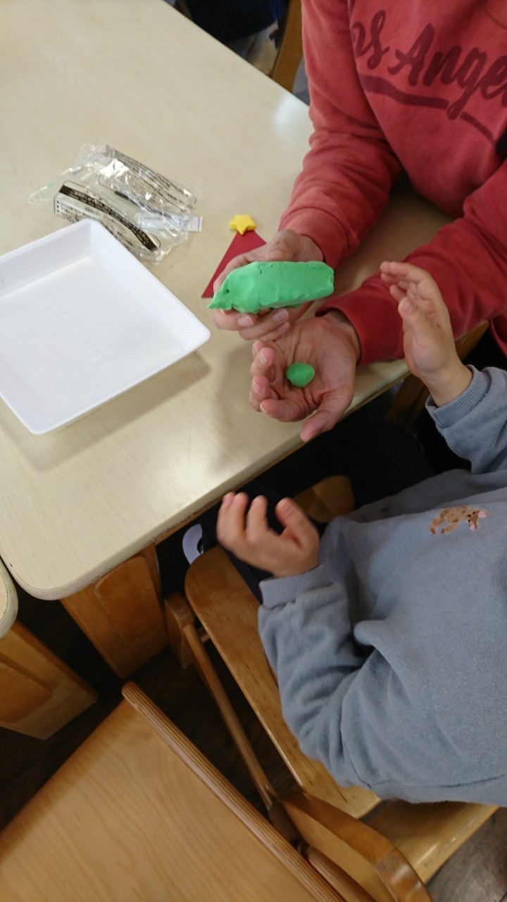 柔らかい紙粘土をちぎったり、丸めたりと感触も楽しみながら