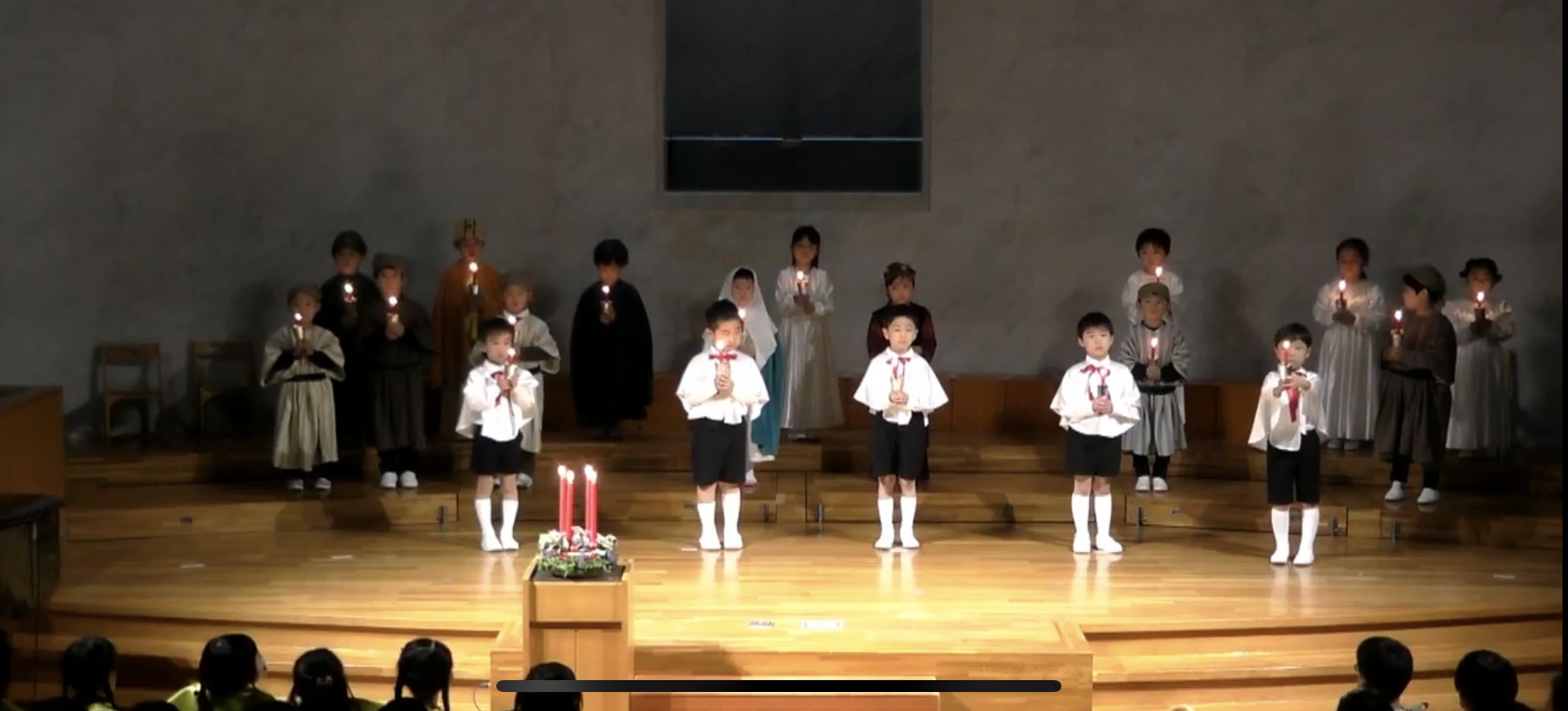 今日は、いつもの登園とは違う、夕方の開催…ページェント中に、外はどんどん暗くなっていく…特別な時を過ごします。
