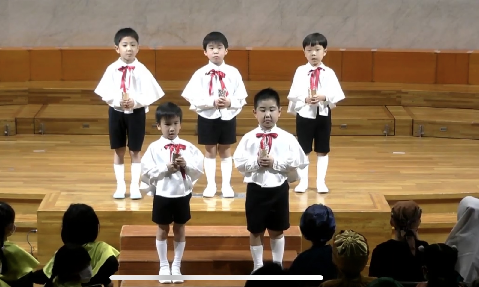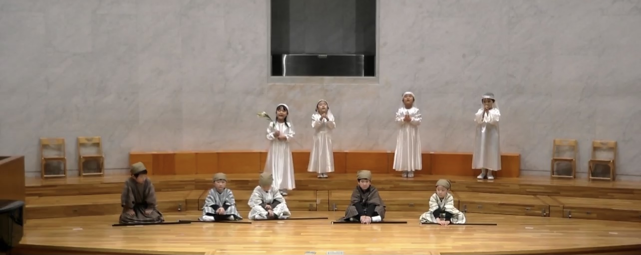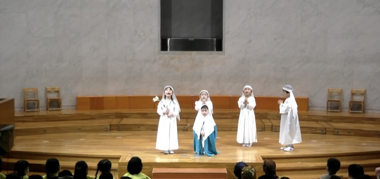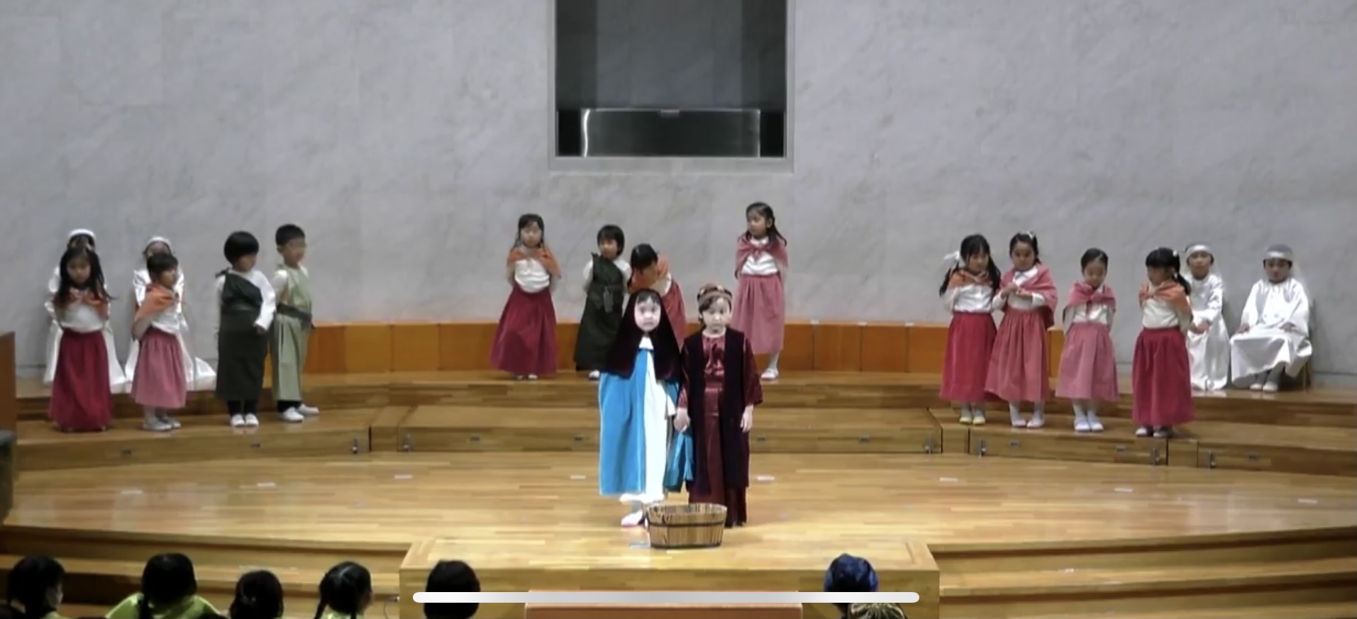 幼稚園生活の中で、この『ページェント』を体験することで、たくさんのことを学び・感じ、得ることが出来たことでしょう。めぐみ幼稚園、最後のページェントに取り組んだ年長組の子どもたちは、今日は、かなり緊張していましたが、その緊張が良い形に出て、1人ひとり1番良い姿で、それぞれのおうちの方に観ていただけましたね。