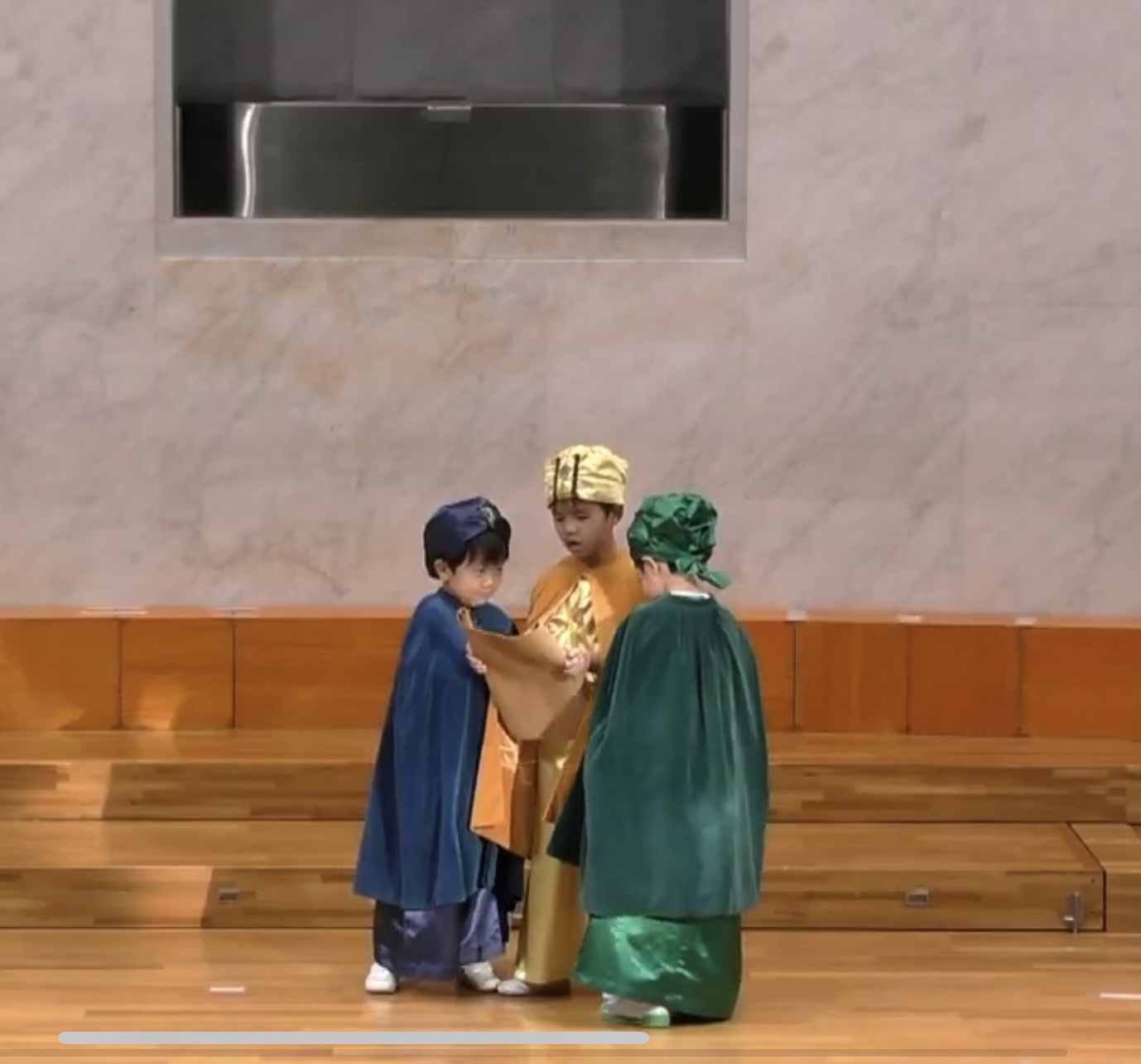 11月から毎日毎日…子どもたちは『ページェント』を楽しみ、繰り返し練習することで、自分のものとしていきました。年長組は、役決めをするのにも色々な思いがありましたが、やりたかった役にはなれなくても、やった役が、皆大好きになり、演じることに喜びを持ちました。