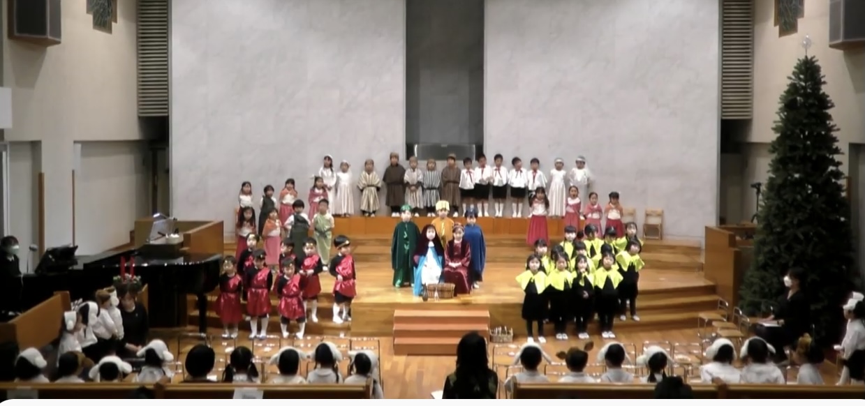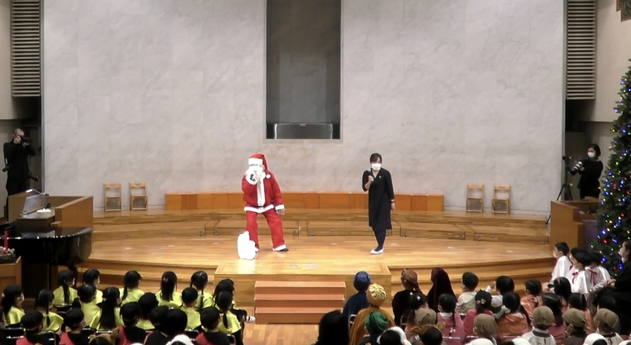 今日は、めぐみ幼稚園のクリスマス祝会2日目でした。年長組の保護者の方々・卒園児のお友だちの参加日です。